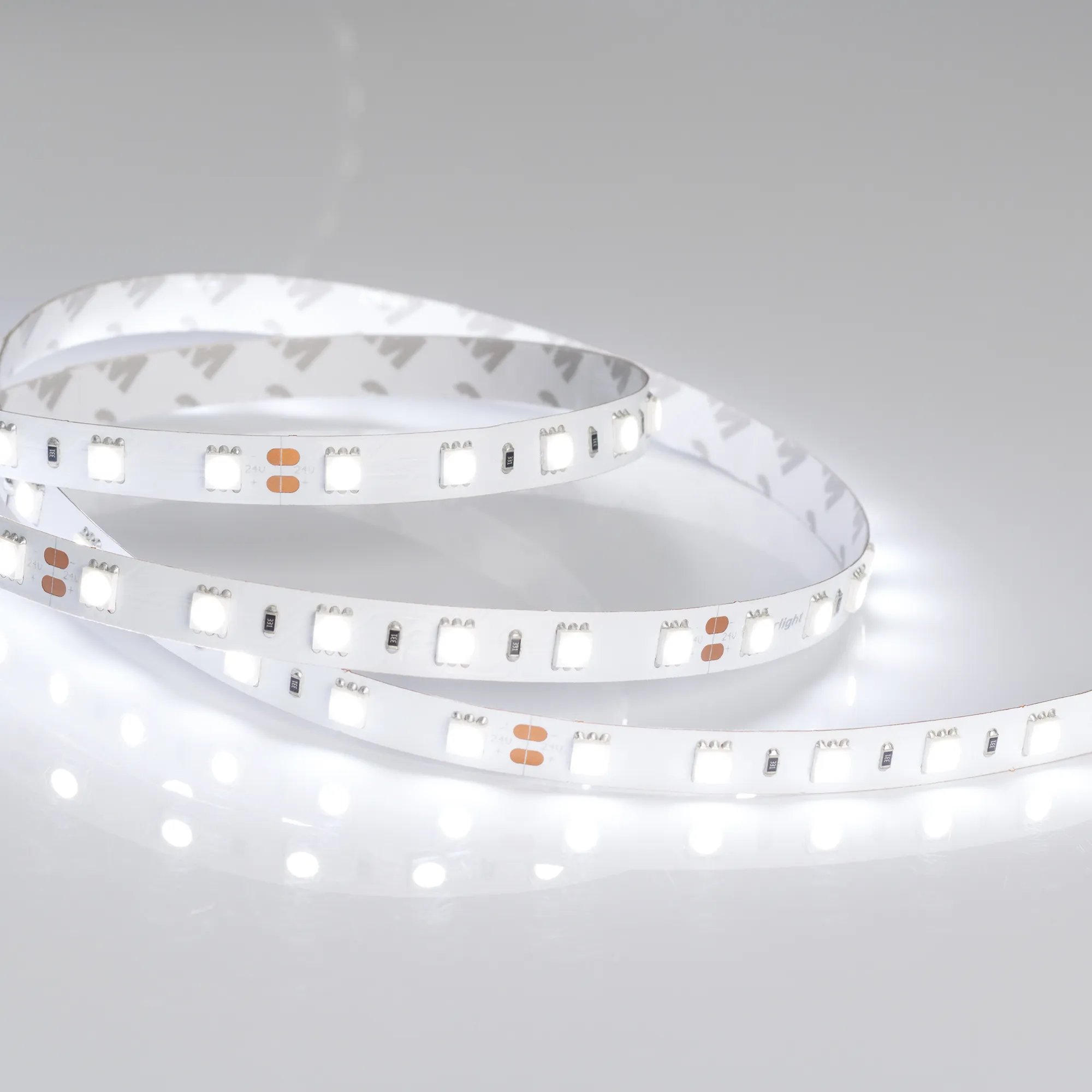 Поставка под заказ от 1000 м. Герметичная лента IP65 (защитное NANO покрытие), светодиоды smd 5060, 60шт/м (300шт на 5м), белая плата 10мм, скотч 3М. Цвет БЕЛЫЙ 5800-6500K. Питание 24V, мощность 14.4 Вт/м (72 Вт на 5м), угол 120°, цветопередача CRI>85. Размеры 5000х10x2.2мм. Мин.отрезок 100мм, 6 светодиодов. Цена за 1м.