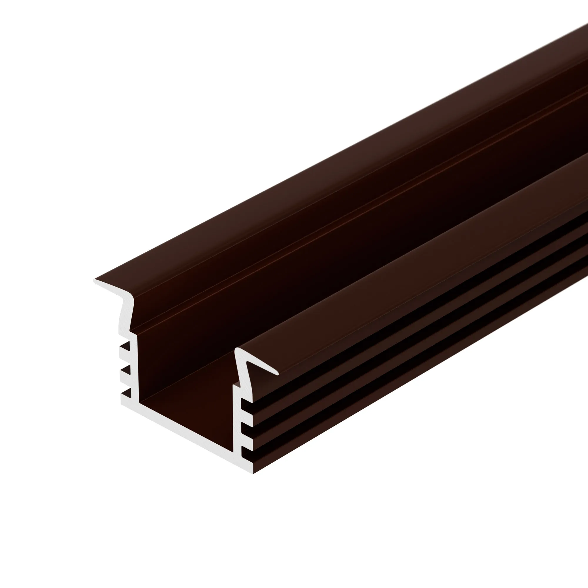 Алюминиевый анодированный профиль для светодиодных лент и линеек. Анодированный в тёмно-коричневый цвет. Габаритные размеры (L×W×H): 2000x22x12,2 мм. Ширина площадки для ленты 11,3 мм. Экраны, заглушки и другие аксессуары приобретаются отдельно. Цена за 1 метр.
