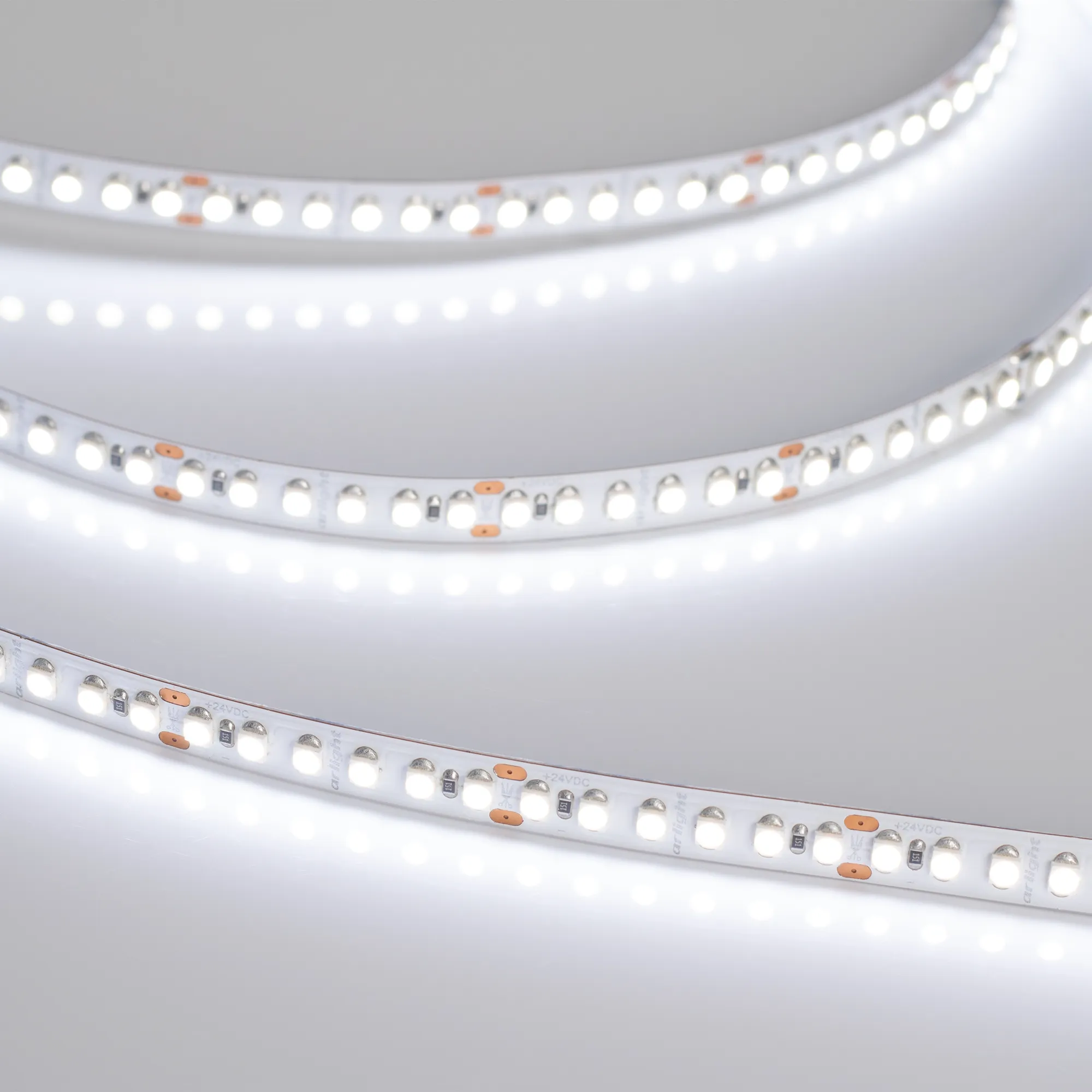 Гибкая лента, светодиоды smd 3528, 180шт/м (900шт на 5м), белая плата 8мм, скотч 3М. Цвет БЕЛЫЙ 5800-6500K. Питание 24V, мощность 14.4 Вт/м (72 Вт на 5м), угол 120°, высокая цветопередача CRI>90. Размеры 5000х8x2мм. Мин.отрезок 33.33мм, 6 шт светодиодов. Пакет 5м. Цена за 1м. Обязательная установка на профиль.