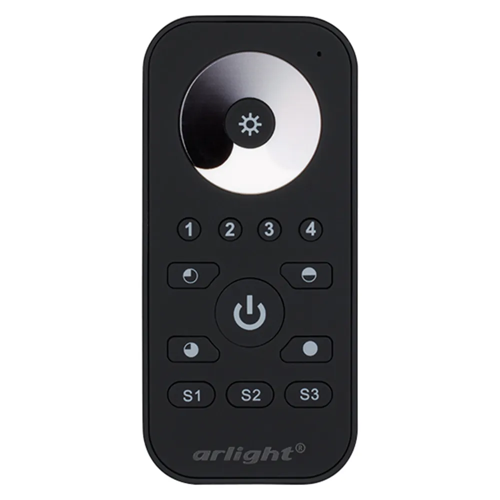 Мультизонный пульт RF (868MHz) с сенсорным кольцом выбора яркости, для белых лент, 4 зоны управления. Черный матовый корпус. Используется с контроллерами серии SR-1009x. Размеры 119х54х10 мм. Держатель в комплекте. Аналогичные по дизайну пульты в серии SMART (устройства не совместимы).