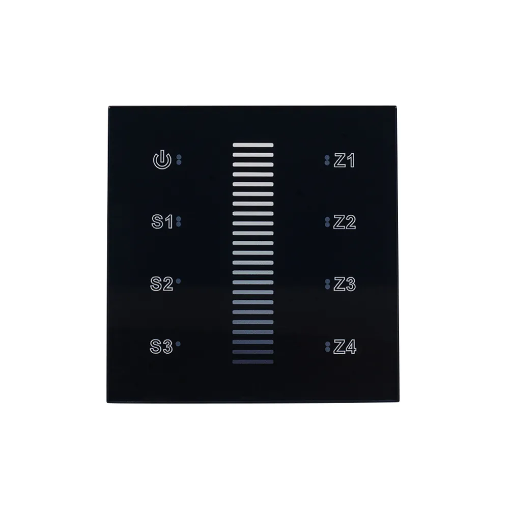 Встраиваемая сенсорная панель для с/д одноцветных лент. Работает вместе с контроллерами серии SR-1009x. Стеклянная Touch-панель, цвет черный. Управление 4 зонами по радиоканалу. Питание 220V. Работает вместе с контроллерами серии SR-1009x. Размер 86x86x29 мм. Аналогичные по дизайну панели в серии SMART (устройства не совместимы).