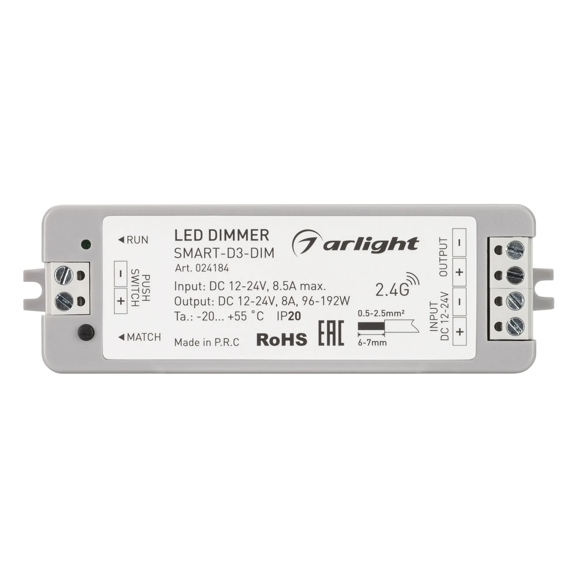 Диммер SMART-D3-DIM (12-24V, 8A, 2.4G) (Arlight, IP20 Пластик, 5 лет)