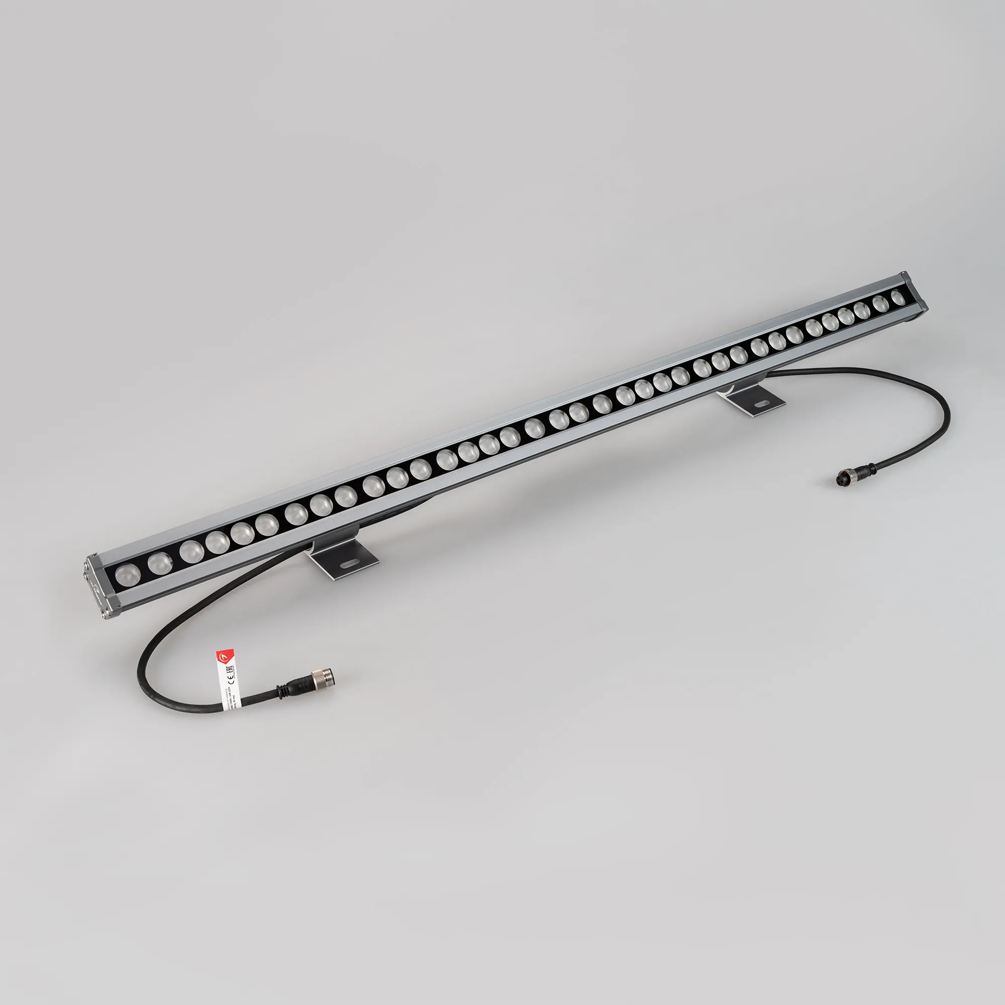 Линейный светодиодный прожектор. Мощность 36W, напряжение питания AC 230V. Светодиоды OSRAM 36 штук. Цвет светодиодов дневной белый 4000K, световой поток 3600 Lm, угол рассеивания 30°. Корпус: алюминиевый сплав и армированное стекло. Цвет корпуса серый, степень влагозащиты IP65. Габариты 1000x78x55мм.