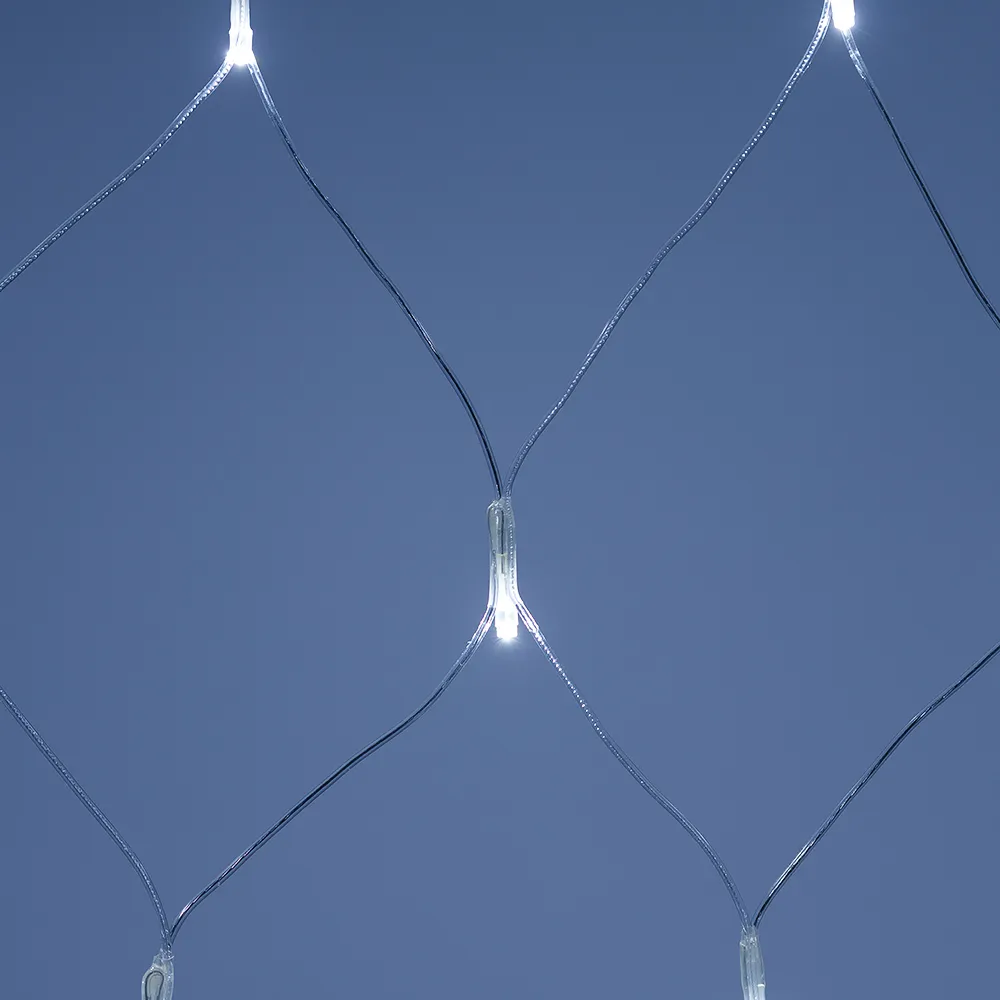 Светодиодная сеть Home. 1500x1500 (длина 1500 мм, высота 1500 мм). Цвет свечения БЕЛЫЙ (6000 К). 150 светодиодов размером 5 мм со статическим и 8 динамическими эффектами свечения с резким световым рисунком (прозрачная вогнутая линза). Провод прозрачный, ПВХ. Питание 230 В, Мощность 12 Вт, защита IP20, применение в помещении. Аксессуары для подключения и выбора режима свечения в комплекте.