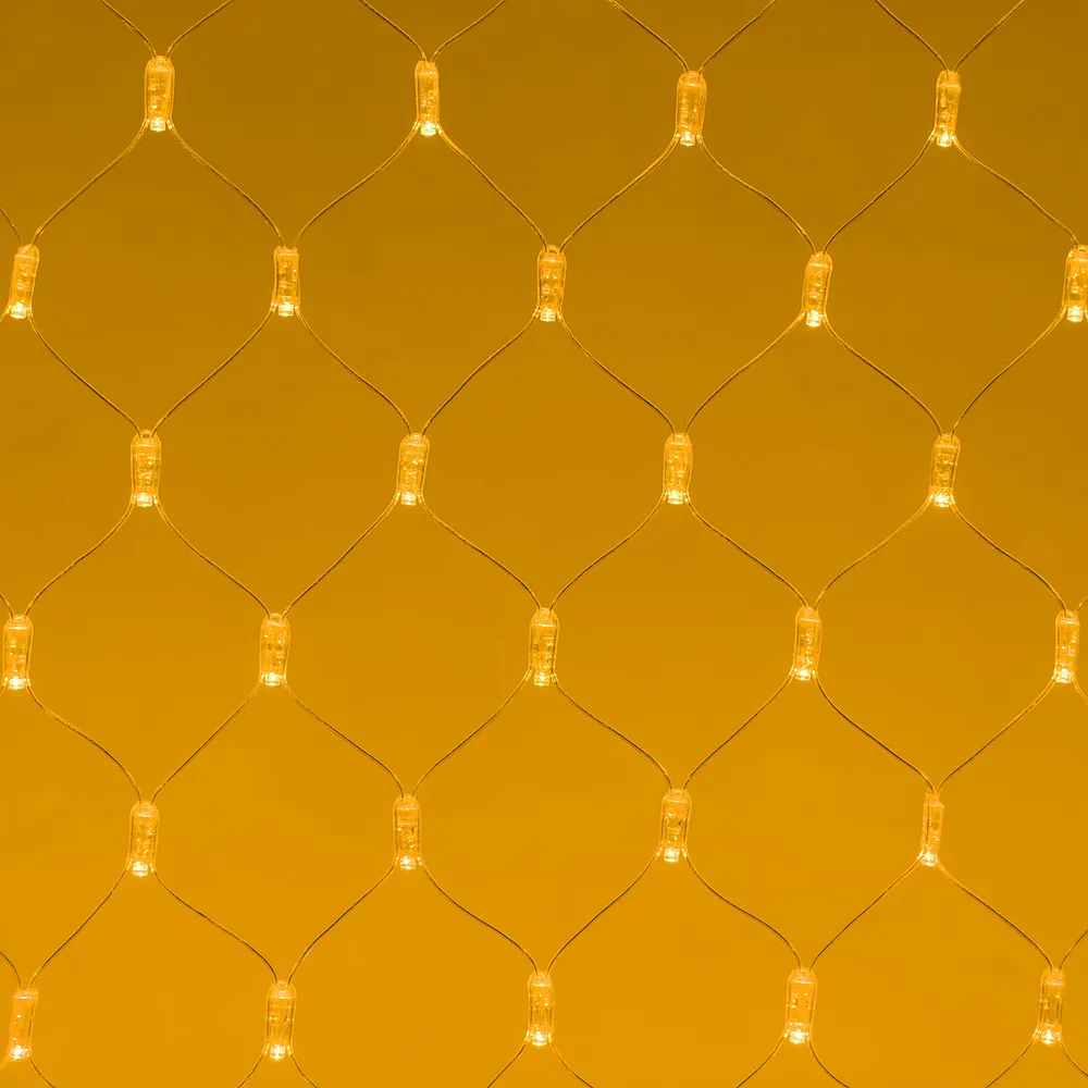 Светодиодная сеть Classic. 2000x1500 (длина 2000 мм, высота 1500 мм). Цвет свечения ЖЕЛТЫЙ. 288 светодиодов размером 7 мм со статическим и 8 динамическими эффектами свечения с резким световым рисунком (прозрачная вогнутая линза). Провод прозрачный, ПВХ. Питание 230 В, Мощность 18 Вт,защита IP65, применение в помещении и на улице под навесом Аксессуары для подключения и выбора режима свечения в комплекте.