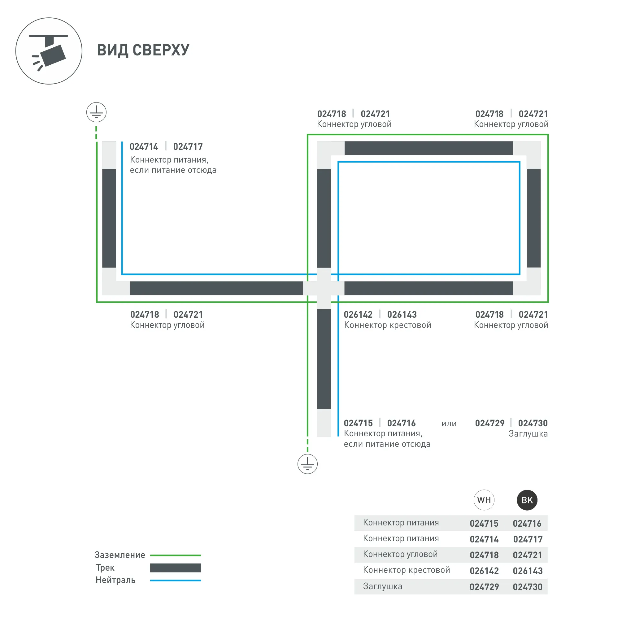 Угловой коннектор 90 градусов, питание по внешней стороне. Цвет черный. 99х99х33 мм с контактами, 66х66х33 мм без контактов. При использовании с треками и аксессуарами другой серии возможно отличие по цвету.