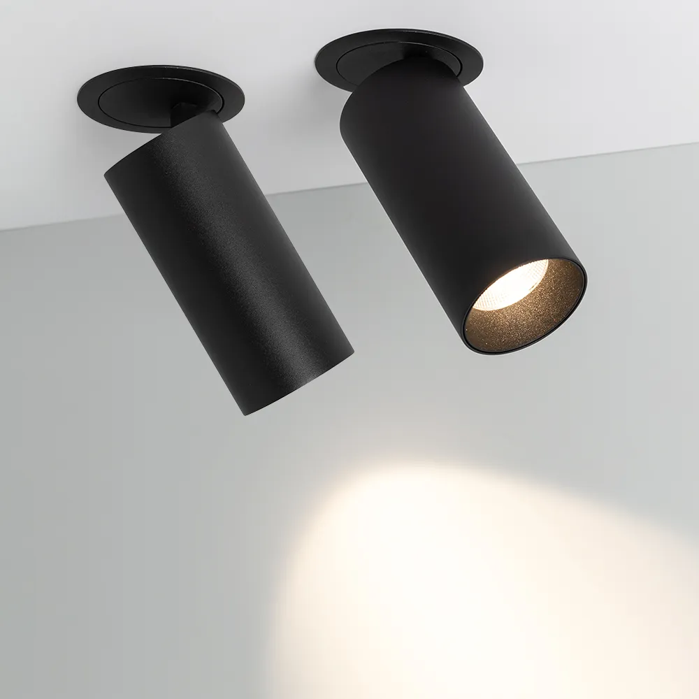 Встраиваемый откидной светильник 8Вт, черный круглый корпус, черная вставка, металл.