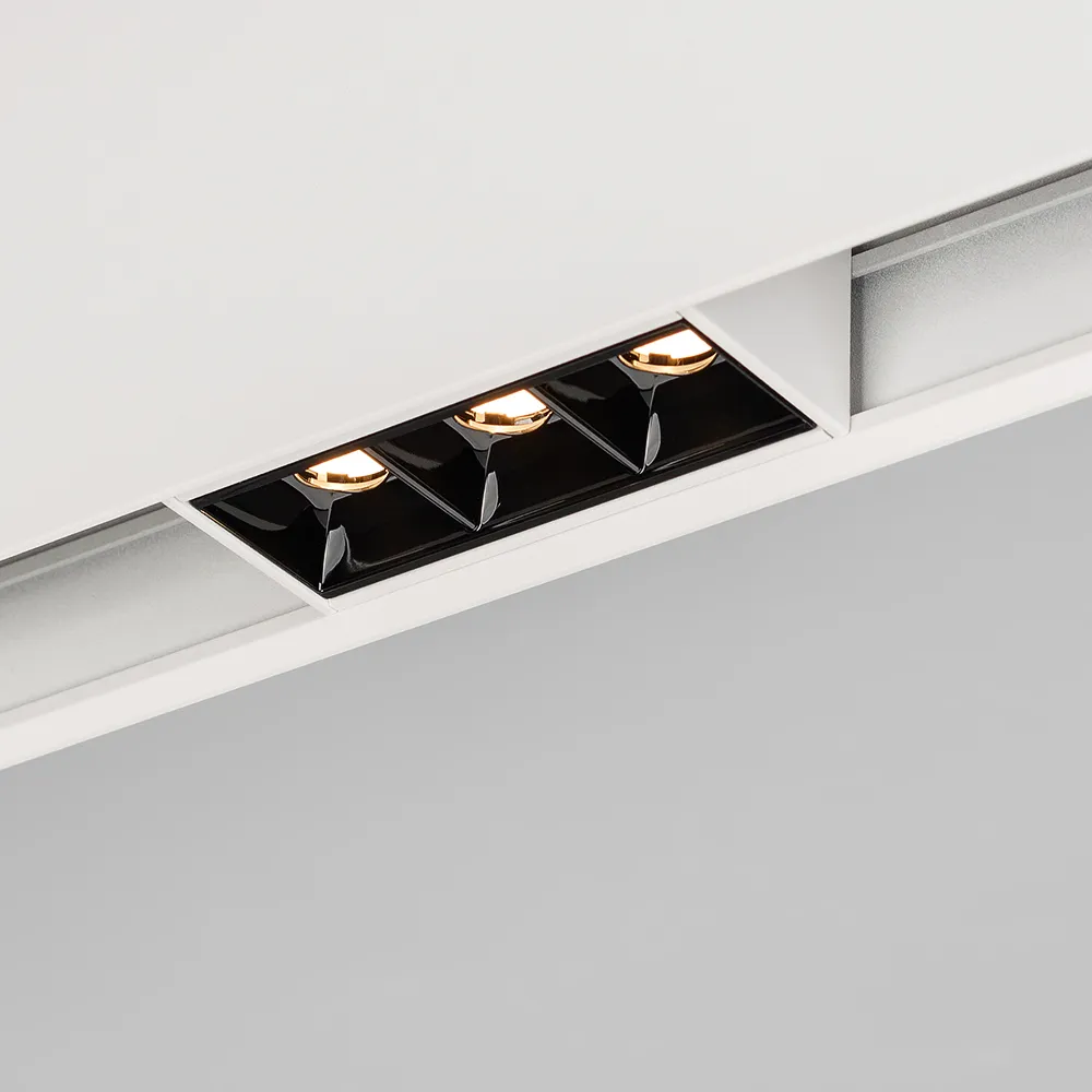 Светильник для магнитных треков шириной 45мм, 3Вт. Цвет свечения ДНЕВНОЙ 4000K, световой поток 226лм, угол 15°, CRI>90. Корпус прямоугольный, металл, цвет белый, IP20. Размеры LxWxH 84x35x43мм. Входное напряжение DC24V, мощность 3Вт. Драйвер DС24V/AC230V поставляется отдельно. Диммируется только с 026407(1), 027633.