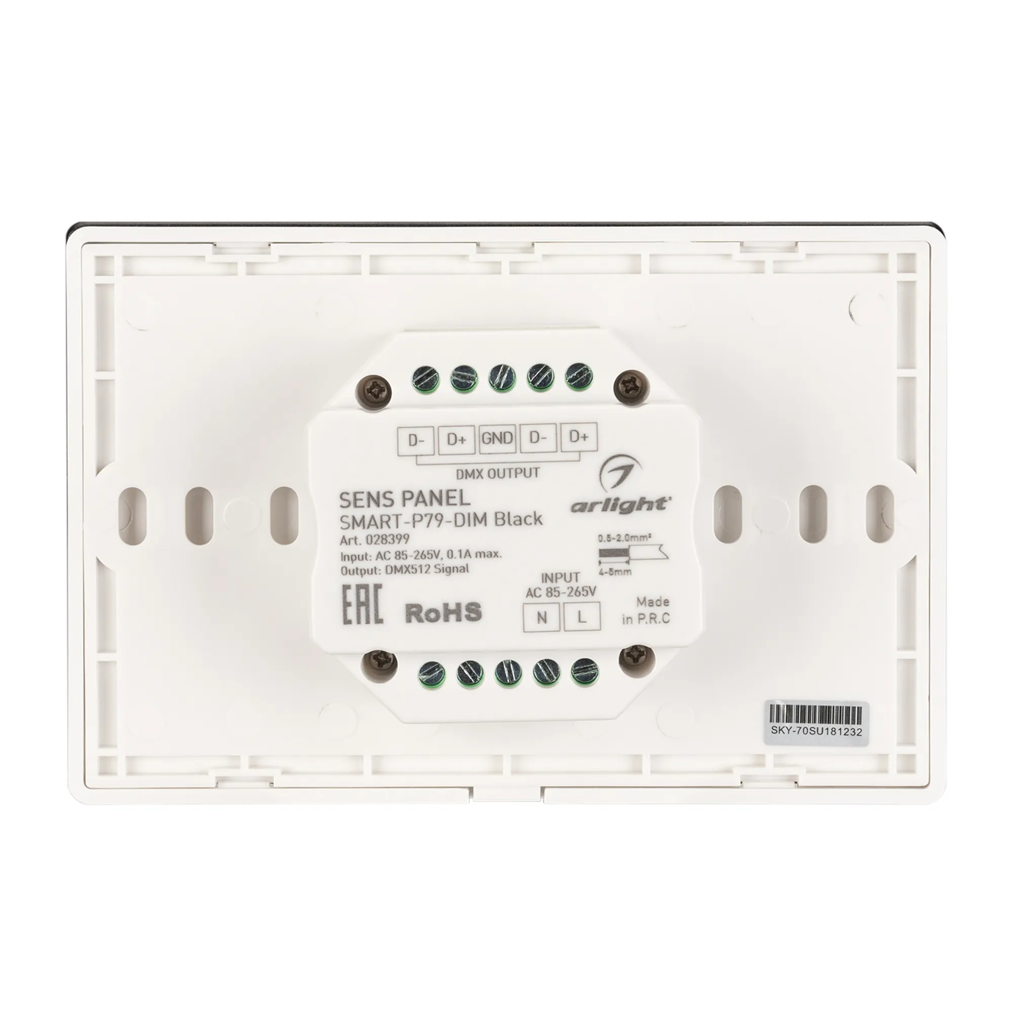 В магазине Мельковский Свет Вы можете купить "Панель Sens SMART-P79-DIM Black (230V, 4 зоны, 2.4G) (Arlight, IP20 Пластик, 5 лет)"