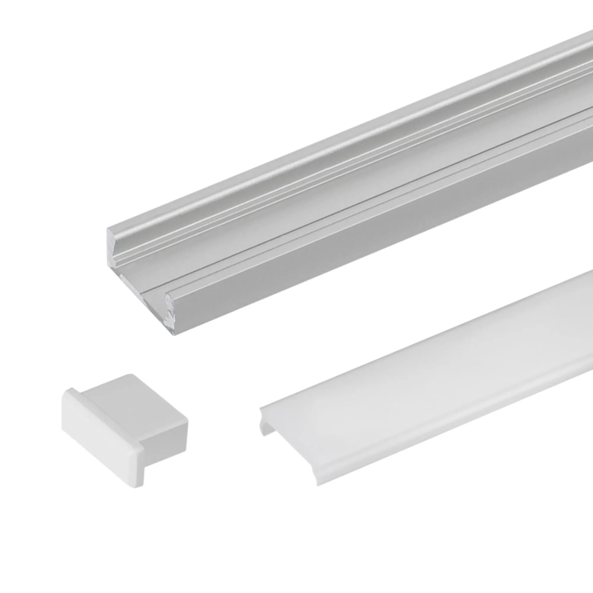 Алюминиевый анодированный профиль для светодиодных лент и линеек. Габаритные размеры (L×W×H): 2000x15,2x6 мм. Ширина площадки для ленты 11,2 мм. Аксессуары приобретаются отдельно. Цена за комплект.
