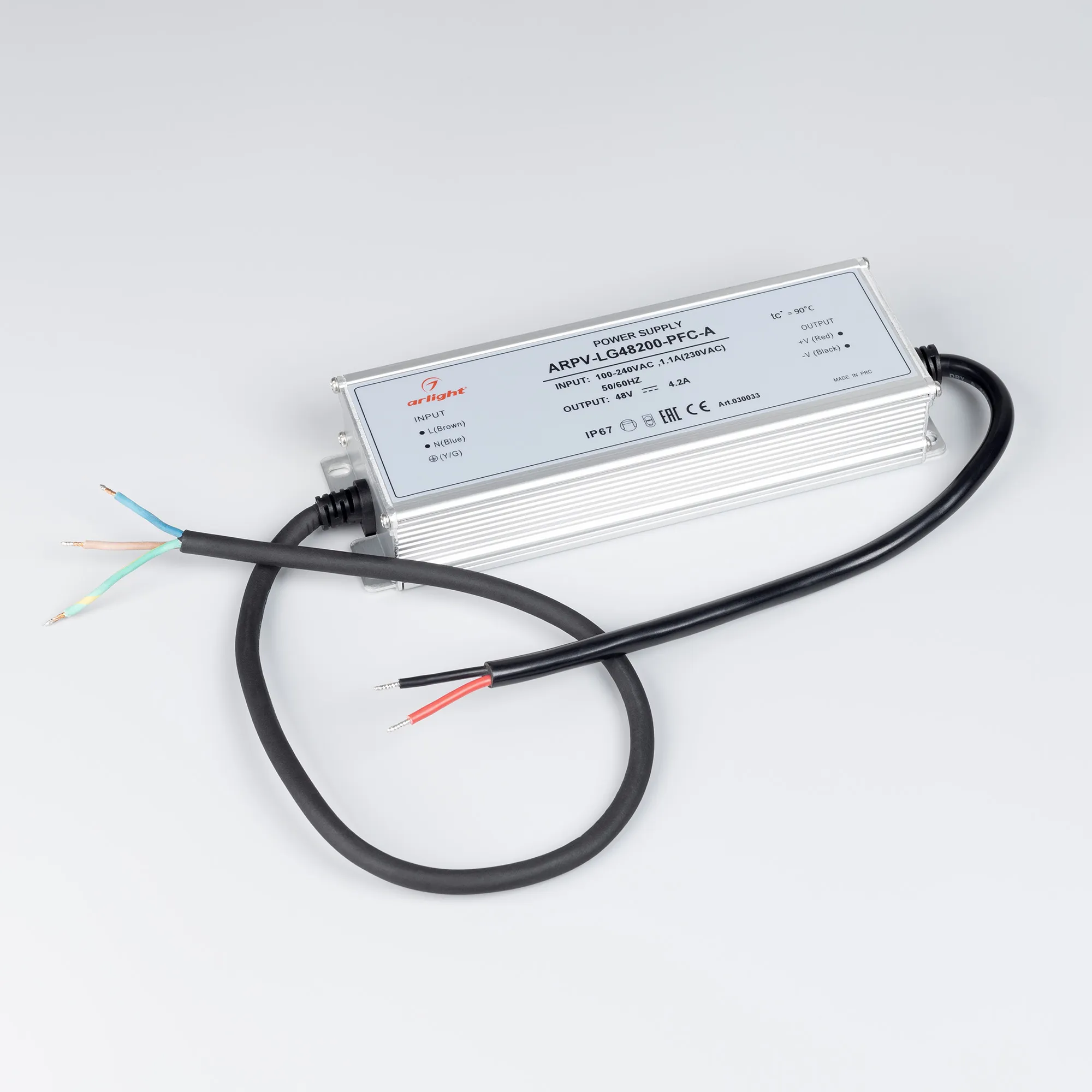 Блок питания ARPV-LG48200-PFC-A (48V, 4.2A, 200W) (Arlight, IP67 Металл, 5 лет)