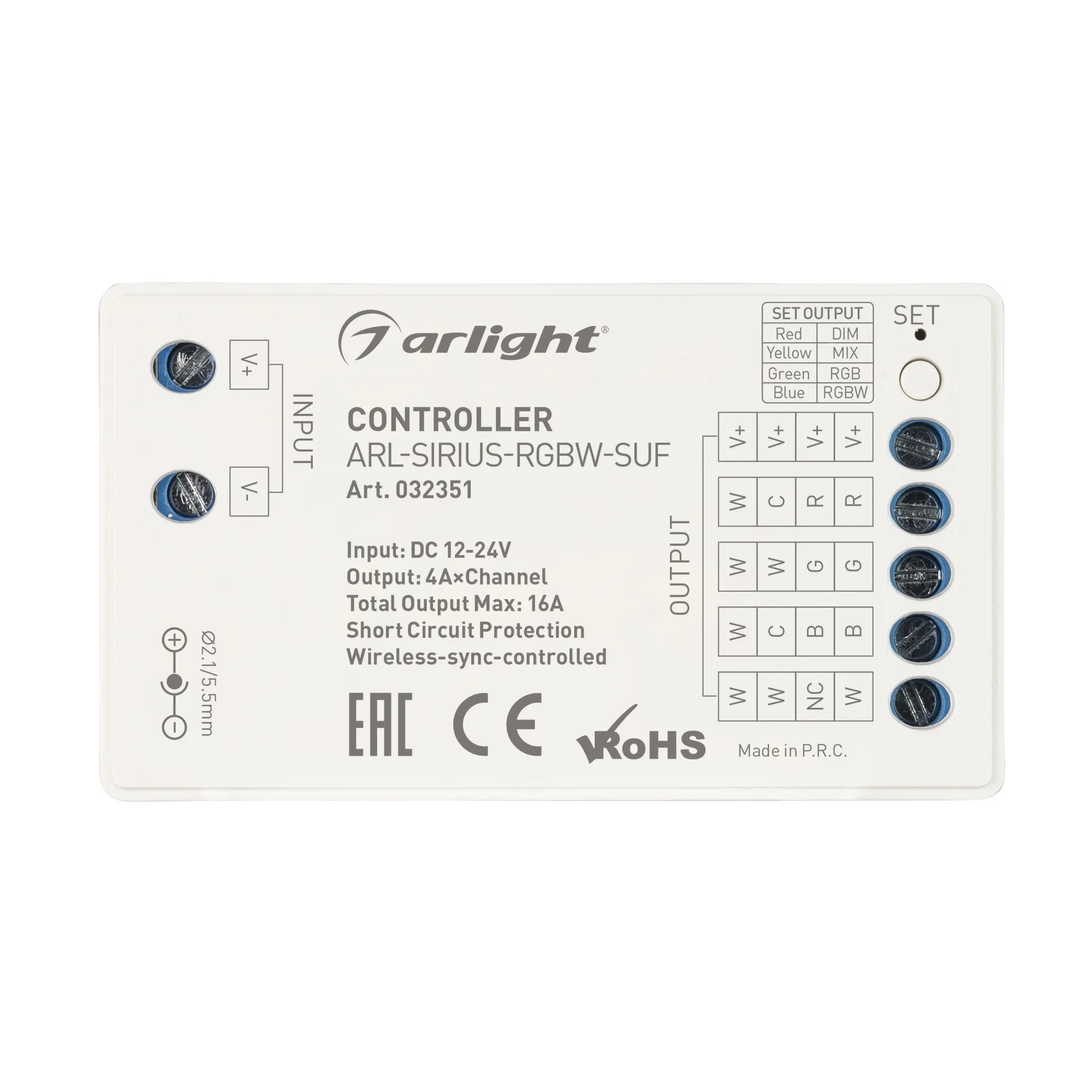 В магазине Мельковский Свет Вы можете купить "Контроллер ARL-SIRIUS-RGBW-SUF (12-24V, 4x4A, 2.4G) (Arlight, IP20 Пластик, 3 года)"