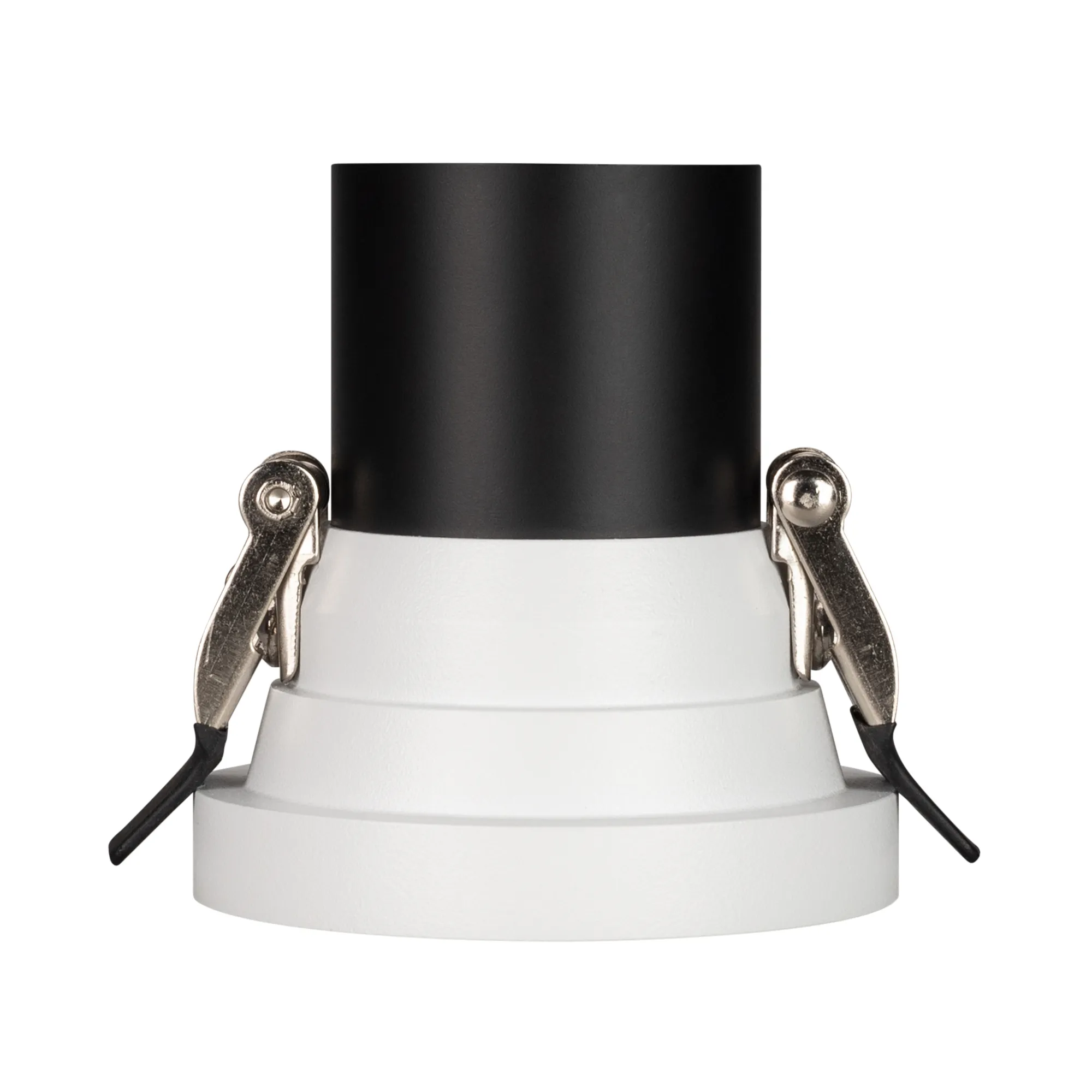 Встраиваемый светильник даунлайт. Мощность 6 Вт, св. поток 560 лм, 93 лм/Вт, теплый 3000 K, CRI>90, UGR<16, угол 38°, напряжение питания 230 В. Белый круглый корпус из алюминия, степень защиты IP20. Размер: диаметр 65 мм, высота 69 мм. Монтаж встраиваемый, установочное отверстие: диаметр 60 мм. Драйвер 28-42 В, 150 мА, пульсация <2%.