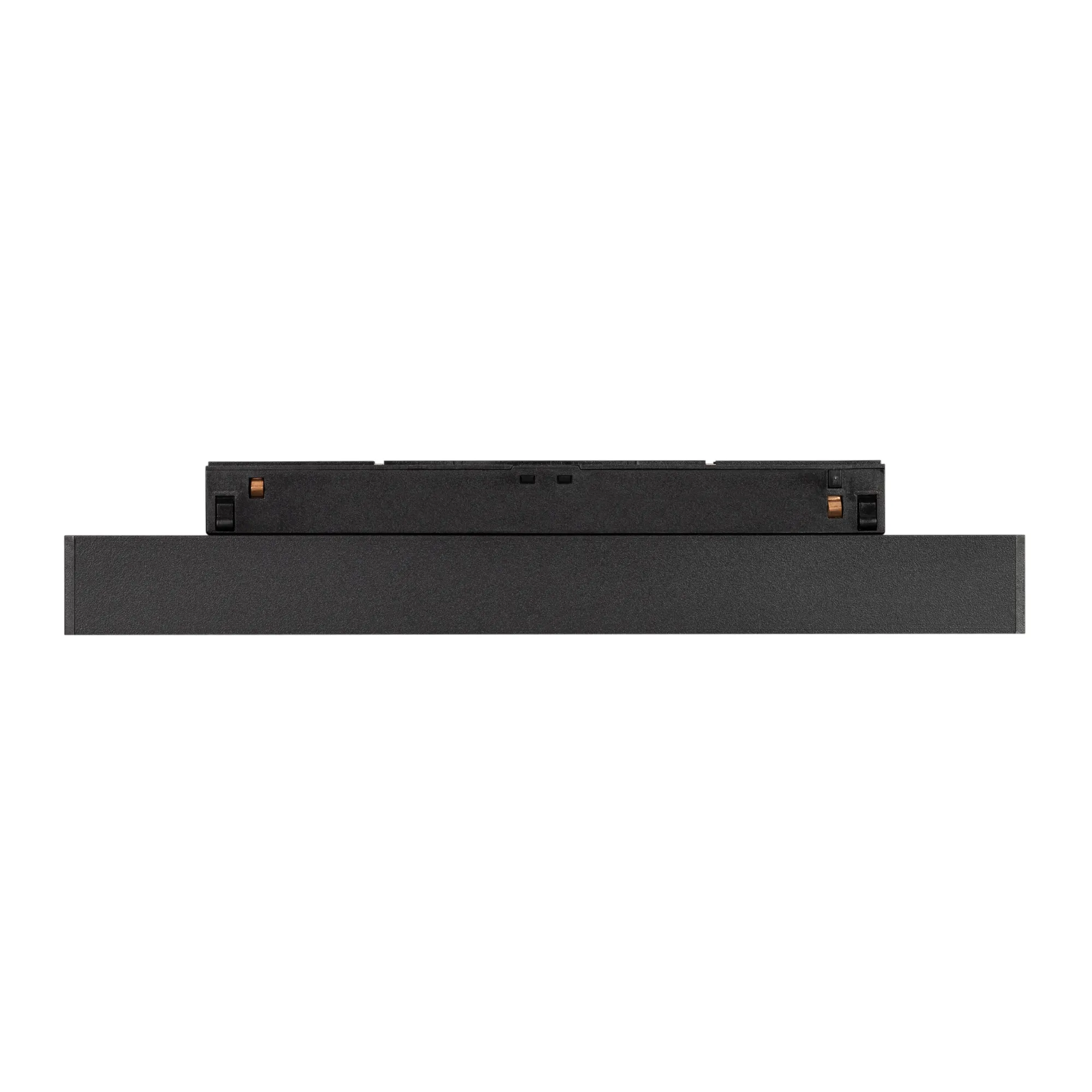 Светильник для магнитных треков MAG-ORIENT шириной 26 мм с управлением DALI. Мощность 8 Вт, св. поток 440 лм, 55 лм/Вт, теплый 3000 K, CRI>90, угол 80°, напряжение питания 48 В. Черный прямоугольный корпус из металл, экран поликарбонат, степень защиты IP20. Размер: длина 235 мм, ширина 22 мм, высота 42 мм. Монтаж на трек MAG-ORIENT. Пульсация <1%.