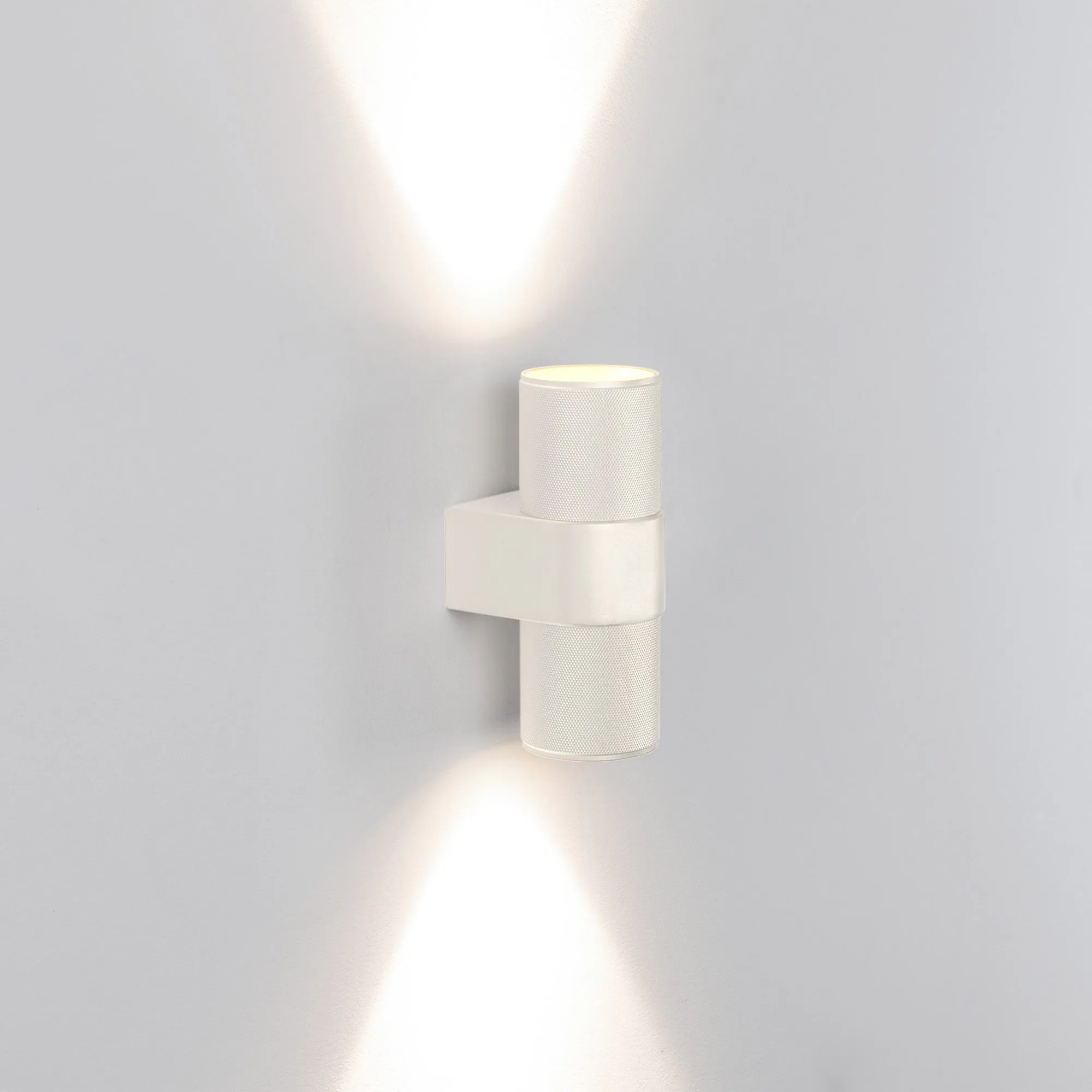 Настенный светильник со свечением в верхнюю и нижнюю полусферу. Мощность 6x2 Вт, св. поток 990 лм, 70 лм/Вт, дневной 4000 K, CRI>90, угол 40°, напряжение питания 230 В. Белый фигурный корпус из алюминия, степень защиты IP20. Размер: длина 110 мм, ширина 72 мм, высота 180 мм. Монтаж накладной. Драйвер 27-42 В, 300 мА, пульсация <1%.
