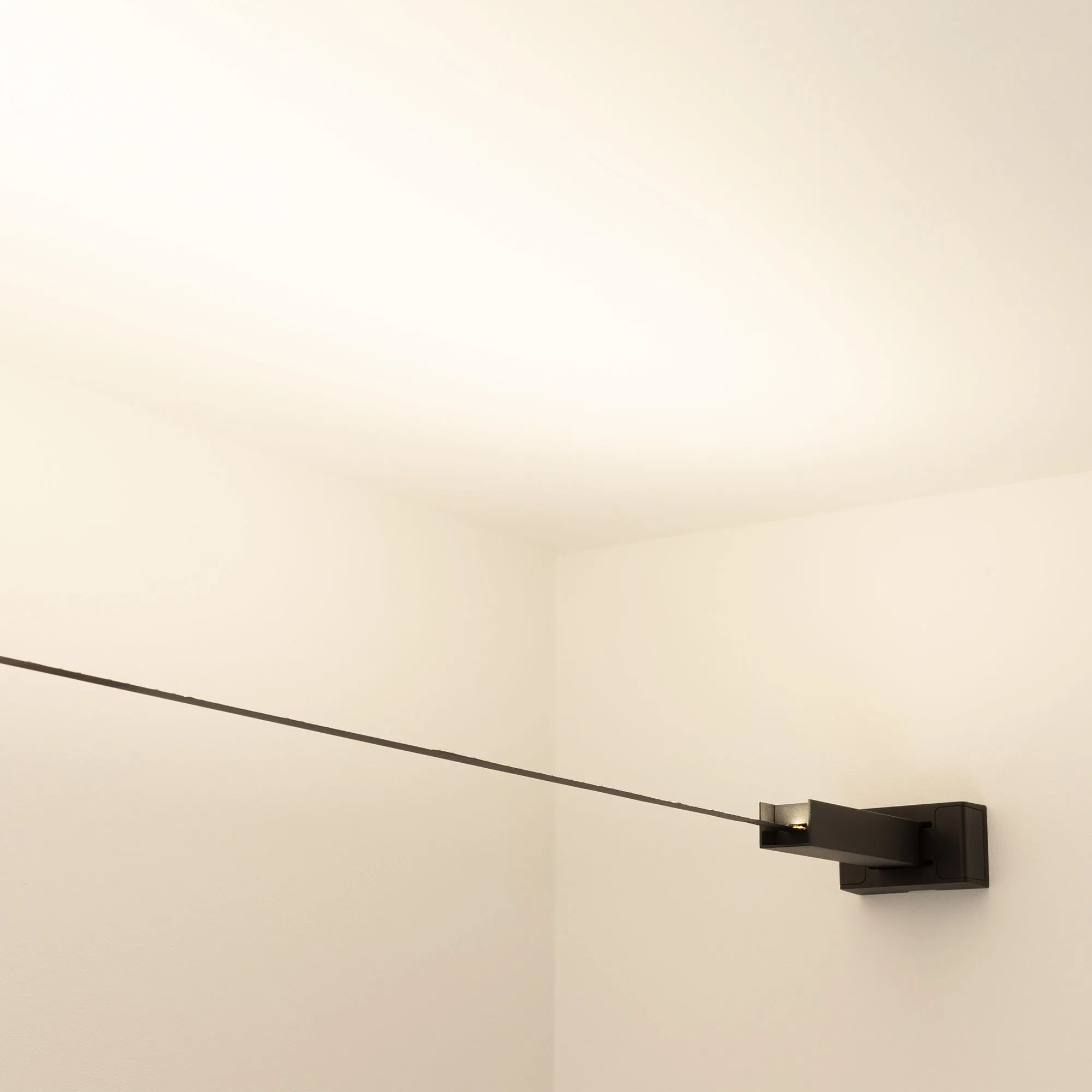 Лента-трос STINGRAY. Цвет - черный. В комплект входит: Открытая светодиодная лента RT-B30, гибкая полоса для ленты 5 м шириной 15 мм, 2 настенных крепления, аксессуары для фиксации и монтажа.