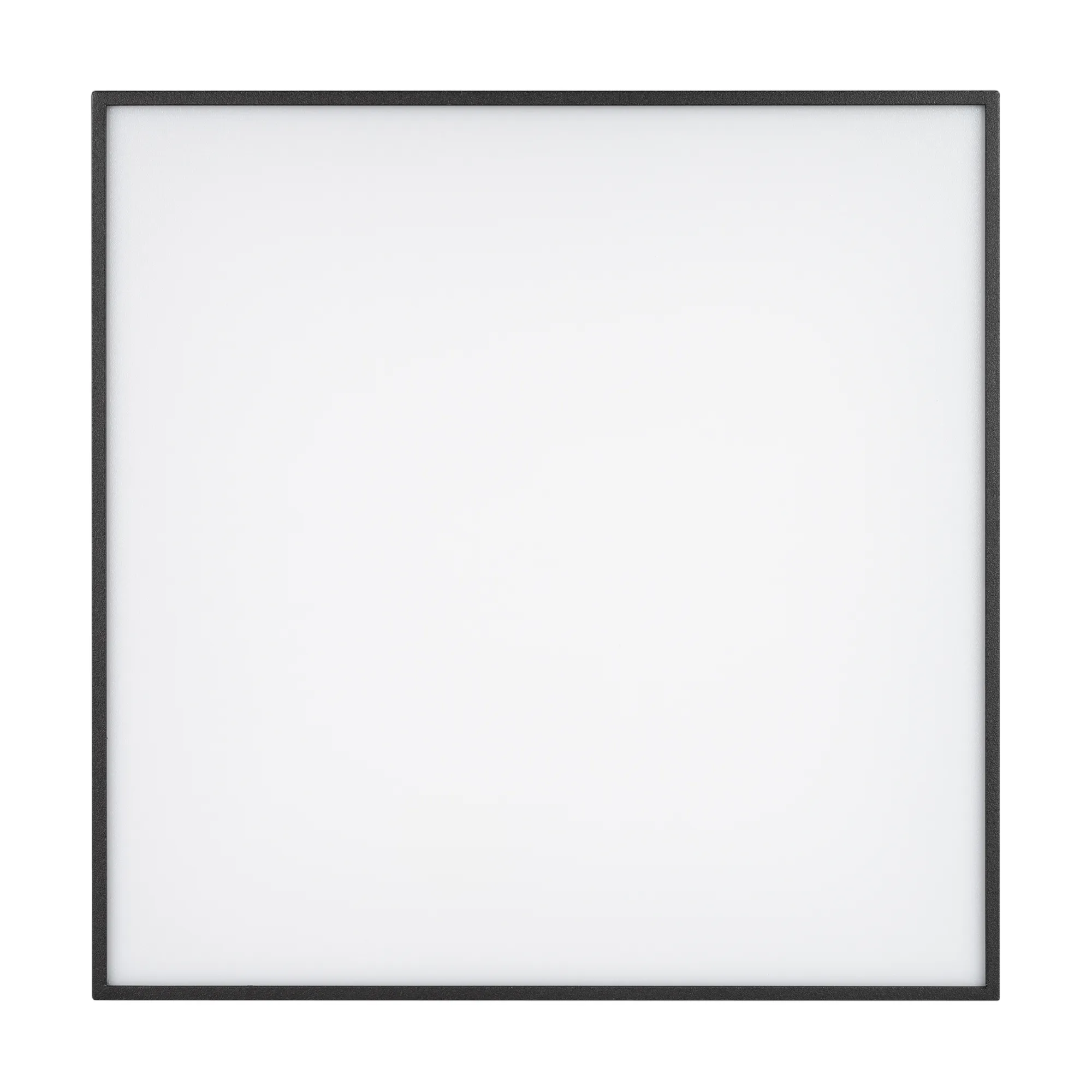 Накладной светильник. Мощность 25 Вт, св. поток 1440-1900 лм, 76 лм/Вт, дневной 4000 K, CRI>90, угол 120°, напряжение питания 230 В. Черный квадратный корпус из алюминия, экран PC, степень защиты IP40. Размер: длина 250 мм, ширина 250 мм, высота 59 мм. Монтаж накладной. Драйвер 27-45 В, 600 мА, пульсация <5%.