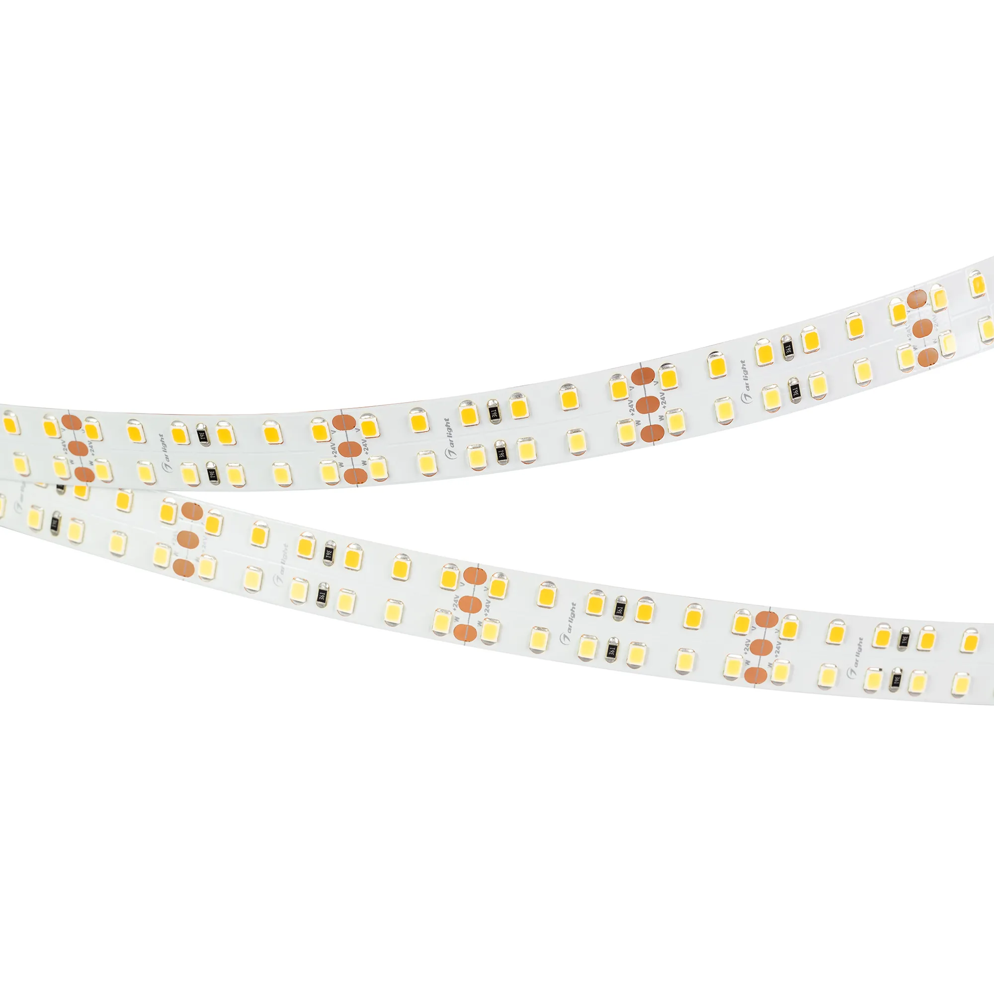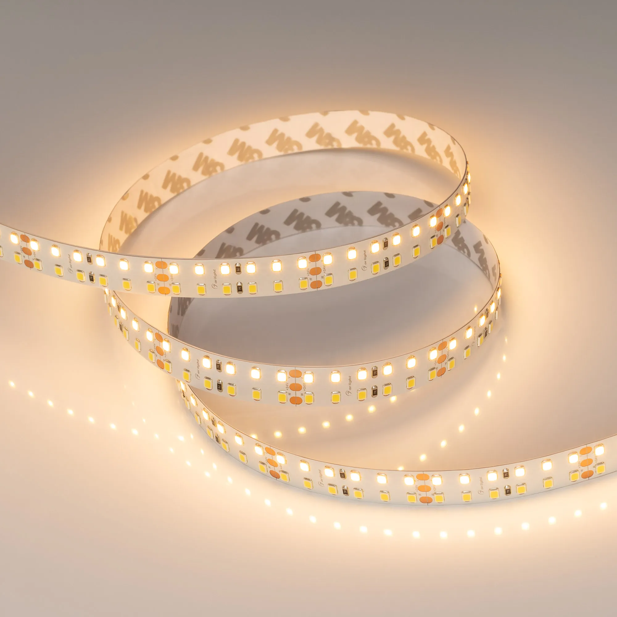 Светодиодная лента RT серии A240 с изменяемым цветом свечения. Светодиоды SMD 2835, 240 шт/м, белая плата шириной 15 мм, скотч 3M. Цвет MIX БЕЛЫЙ 6000K + ТЕПЛЫЙ 2700K, индекс цветопередачи CRI>85, угол 120°. Питание 24 В, мощность 19.2 Вт/м (96 Вт на 5 м). Размеры 5000x15x1.8 мм. Мин. отрезок 50 мм, 12 светодиодов. Цена за 1 м.
