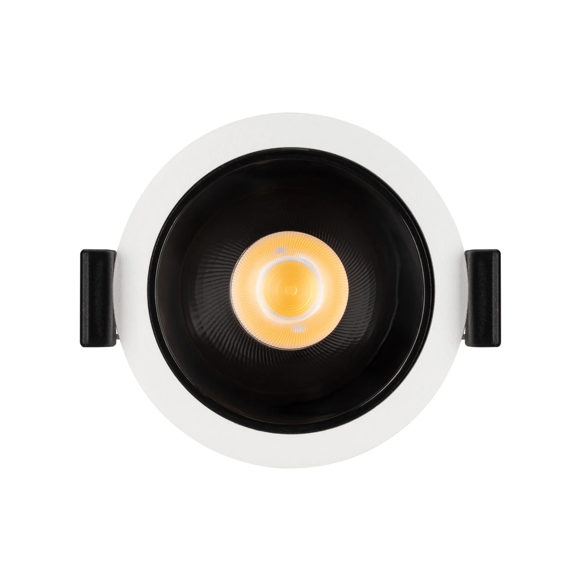 Встраиваемый светильник даунлайт. Мощность 15 Вт, св. поток 1210 лм, 81 лм/Вт, теплый 3000 K, CRI>90, UGR<16, угол 35°, напряжение питания 230 В. Белый круглый корпус из алюминия, черный ГЛЯНЦЕВЫЙ отражатель из PMMA, степень защиты IP20. Размер: диаметр 66 мм, высота 68 мм. Монтаж встраиваемый, установочное отверстие: диаметр 60 мм. Драйвер 26-43 В, 350 мА, пульсация <2%.