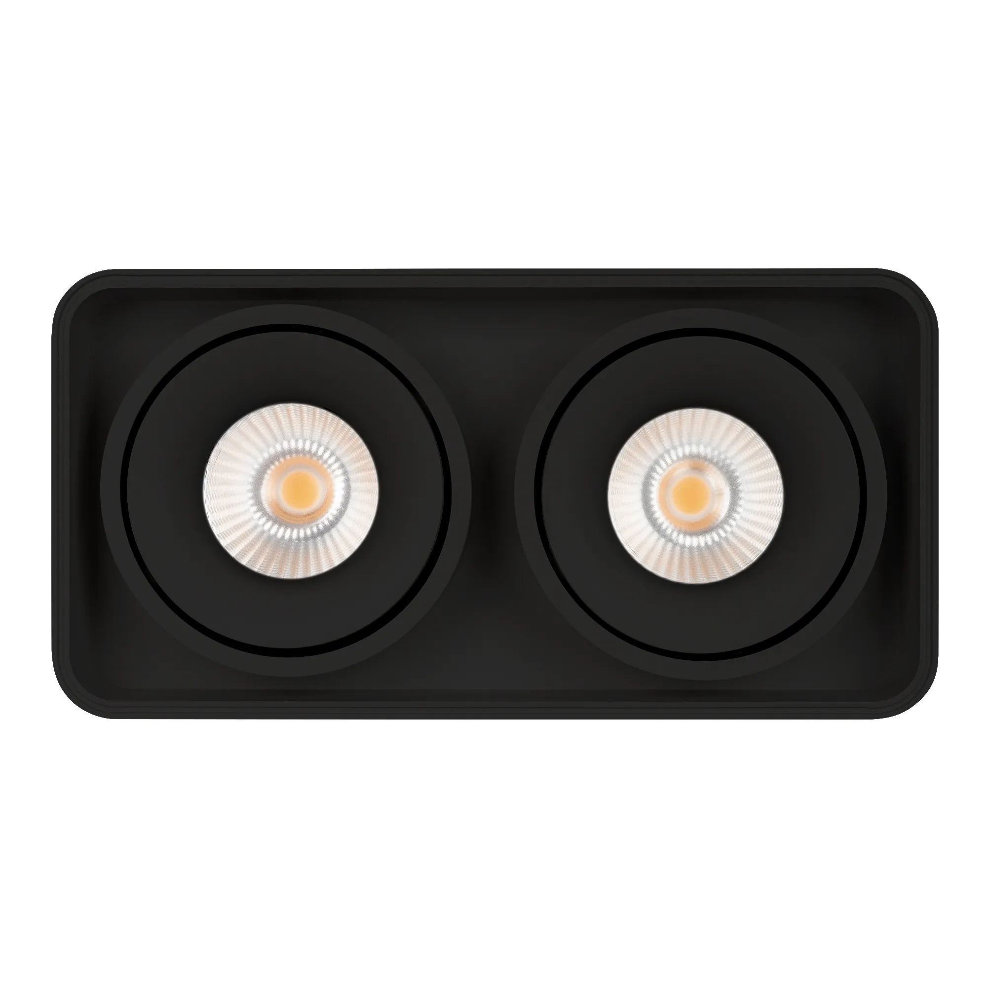 Накладной интерьерный светильник. Мощность 16 Вт, св. поток 1490 лм, 98 лм/Вт, теплый 3000 K, CRI>90, угол 45°, регулируемое направление луча 30°, напряжение питания 230 В. Черный квадратный корпус из алюминия, степень защиты IP20. Размер: длина 195 мм, ширина 100 мм, высота 100 мм. Монтаж накладной. Драйвер 26-40 В, 400 мА, пульсация <5%.