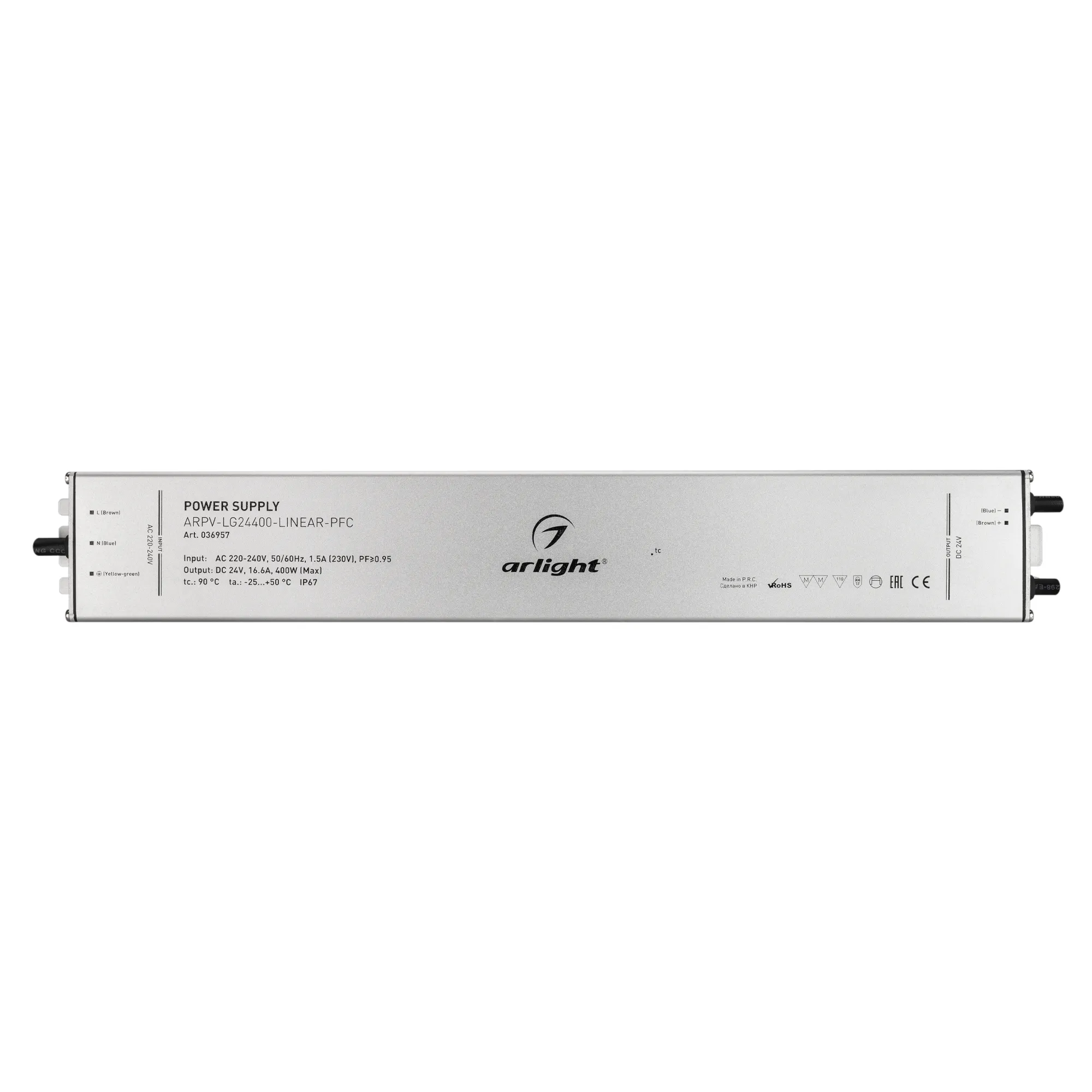 Наши специалисты знают все о продукции Arlight и с радостью помогут Вам выбрать комплектующие к товару "Блок питания ARPV-LG24400-LINEAR-PFC (24V, 16.6A, 400W) (Arlight, IP67 Металл, 5 лет)", или другие товары из раздела "герметичные с PFC [IP67, металл]".