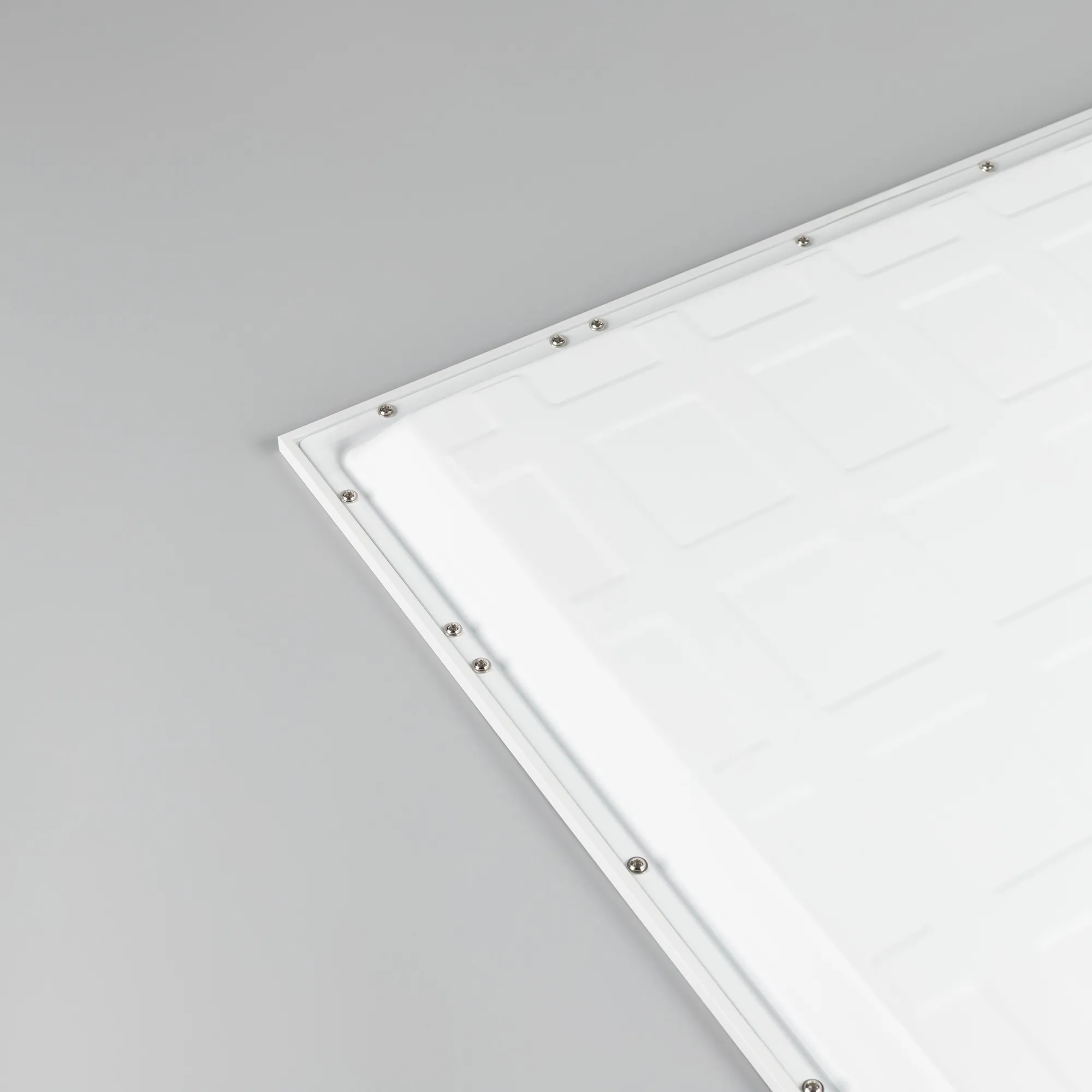 Светодиодная панель с прямой засветкой (backlit). Мощность 40 Вт, св. поток 4000 лм, 100 лм/Вт, дневной 4000 K, CRI>80, угол 120°, напряжение питания 230 В. Белый квадратный корпус из алюминия, экран PS, степень защиты IP54. Размер: длина 595 мм, ширина 595 мм, высота 31,3 мм. Монтаж встраиваемый, установочное отверстие длина 575 мм, ширина 575 мм. Драйвер 28-40 В, 1000 мА, пульсация <1% со степенью защиты IP65, подключение с помощью герметичного коннектора.