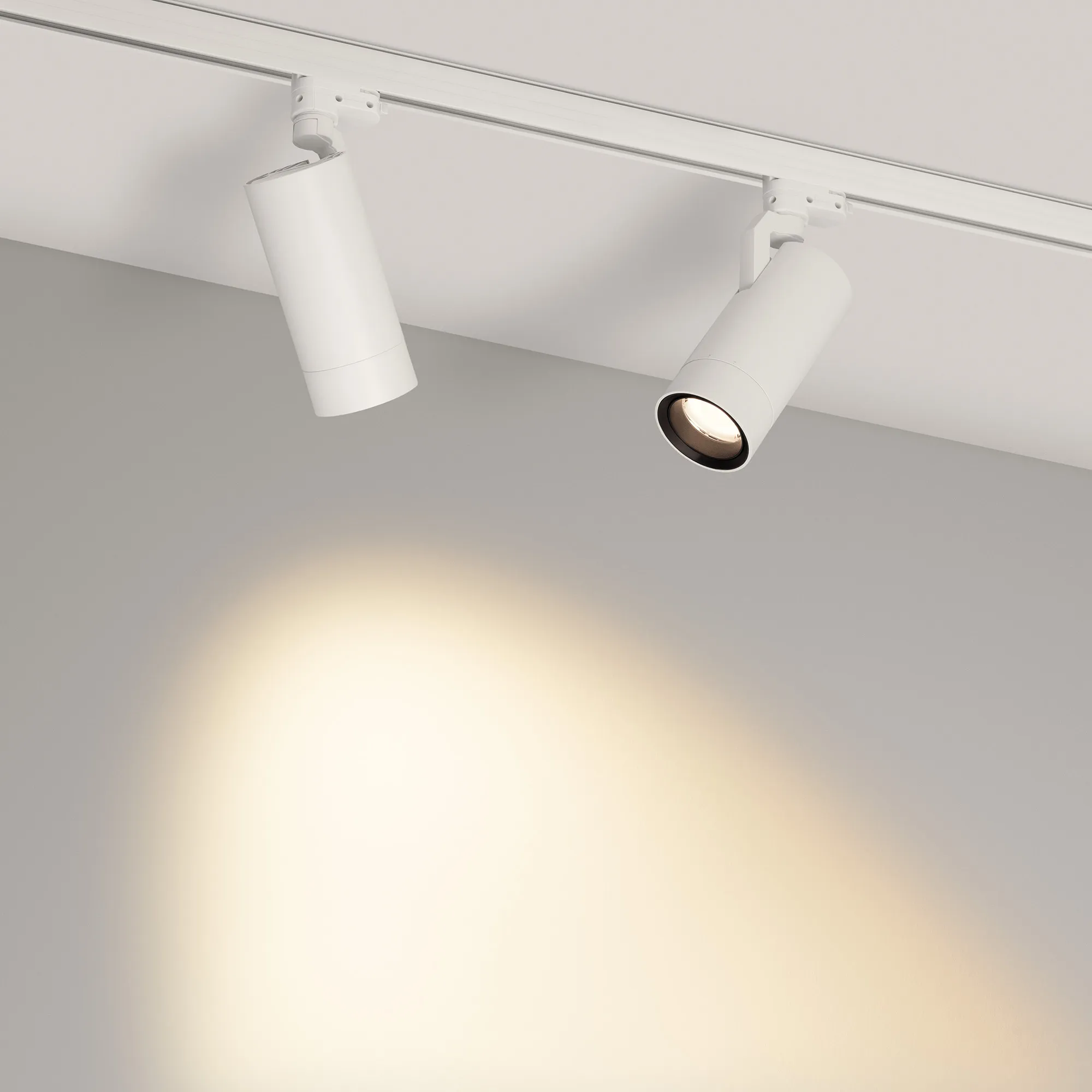 Светильник для треков/шин 4 провода, 20Вт. Цвет свечения меняется в диапазоне 3000К-6000К (возможность изменения цветовой температуры при помощи диммера DALI), световой поток 1500 лм, 74 лм/Вт, регулируемый угол 20-60°, CRI>90. Корпус круглый, металл, цвет белый, IP20. Размеры DxL Ø80x181мм.. Входное напряжение AC220-240V, мощность 20Вт. Драйвер встроенный 12-54 В, 500 мА. Совместим только с шинопроводом серии С.