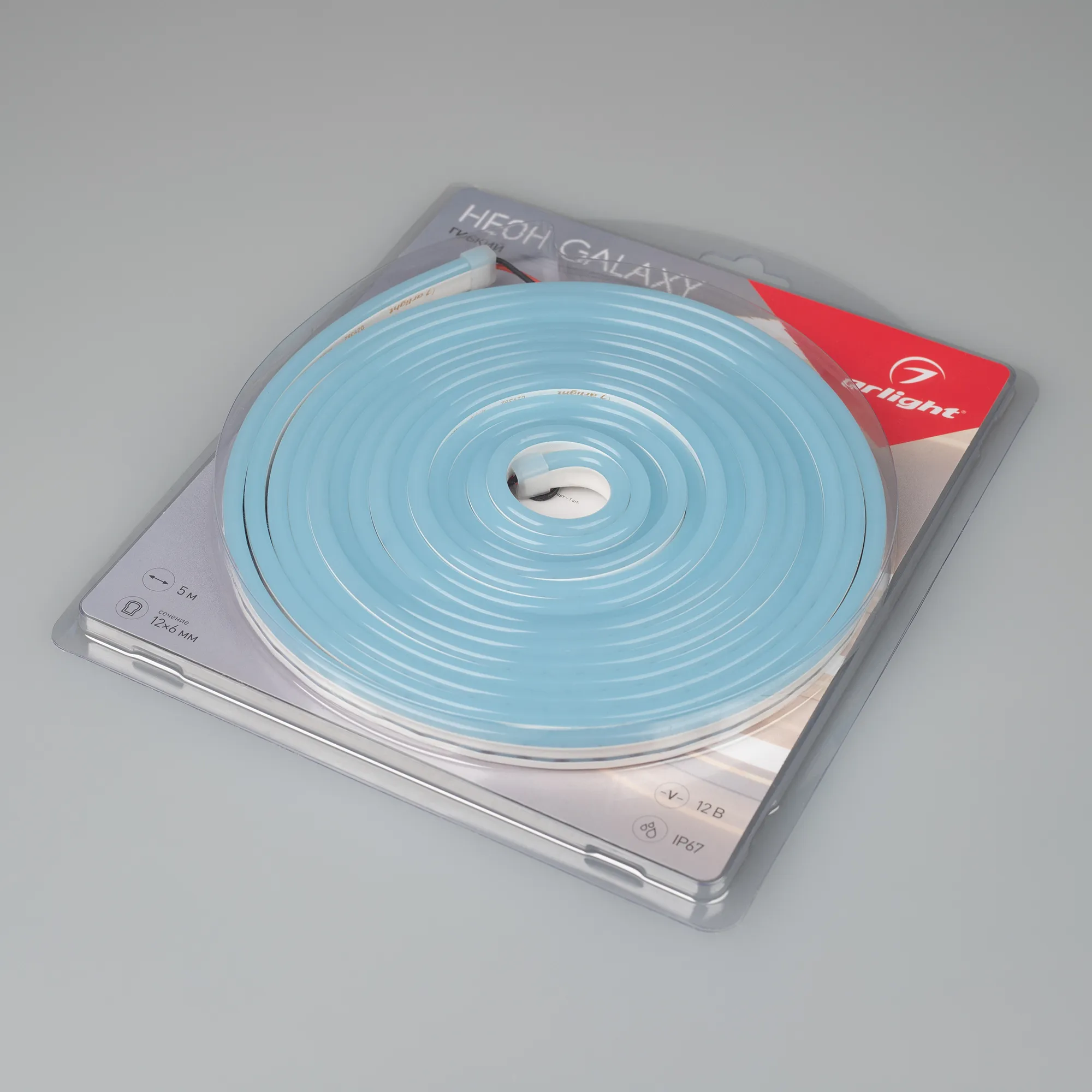 Гибкий неон GALAXY в силиконовой оболочке. Светодиоды SMD2835, 100 шт-м, цвет ГОЛУБОЙ. Сечение 12х6 мм, горизонтальный (боковой) изгиб, IP67, шаг резки 10 мм, мощность 12 Вт-м, напряжение питания DC 12V. Укомплектован заглушками и 30см проводом питания. Рекомендуется провести дополнительную герметизацию заглушек.