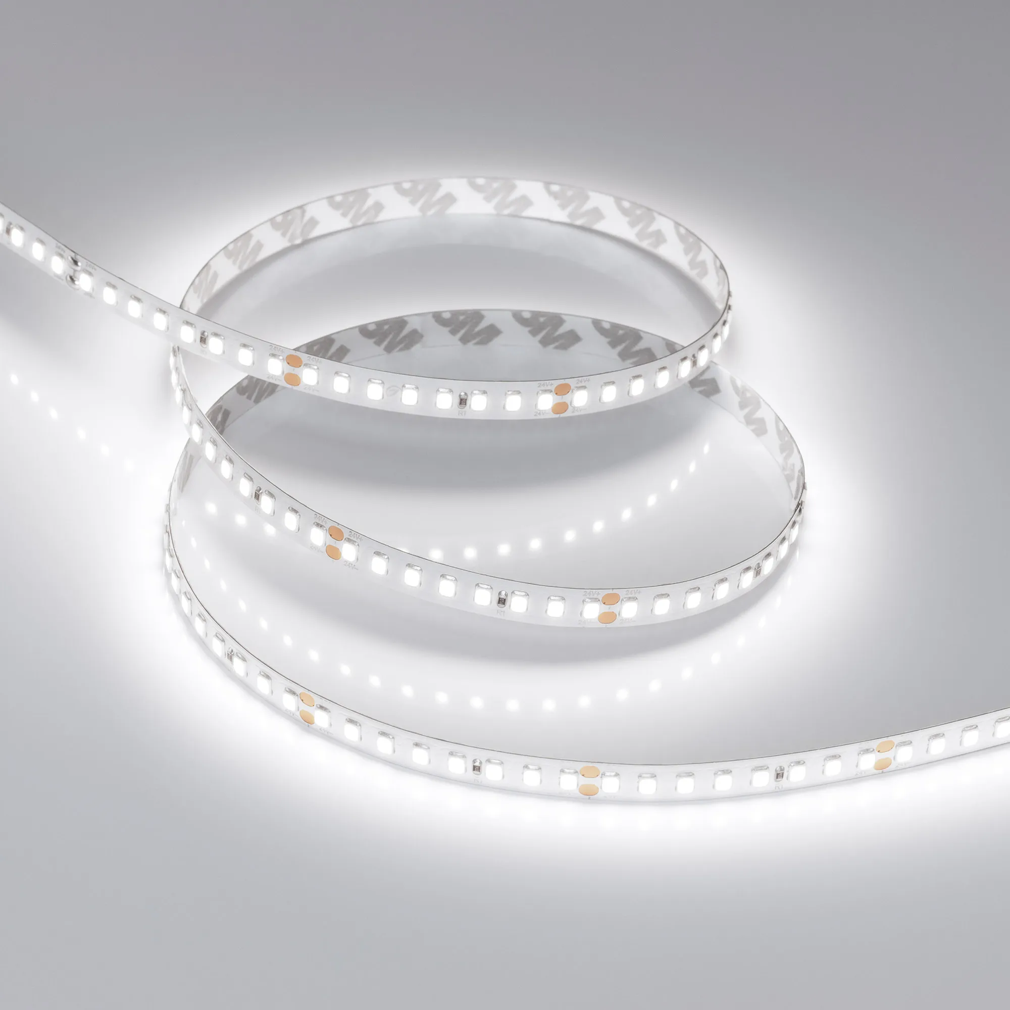 Светодиодная высокоэффективная лента UL серии A160. Светодиоды SMD 2835, 160 шт/м, белая плата шириной 8 мм, скотч 3M. Цвет БЕЛЫЙ 6000K, индекс цветопередачи CRI>90, угол 120°. Питание 24 В, мощность 12 Вт/м (60 Вт на 5 м). Размеры 5000x8x1.5 мм. Мин. отрезок 50 мм, 8 светодиодов. Цена за 1 м. Обязательна установка на профиль.
