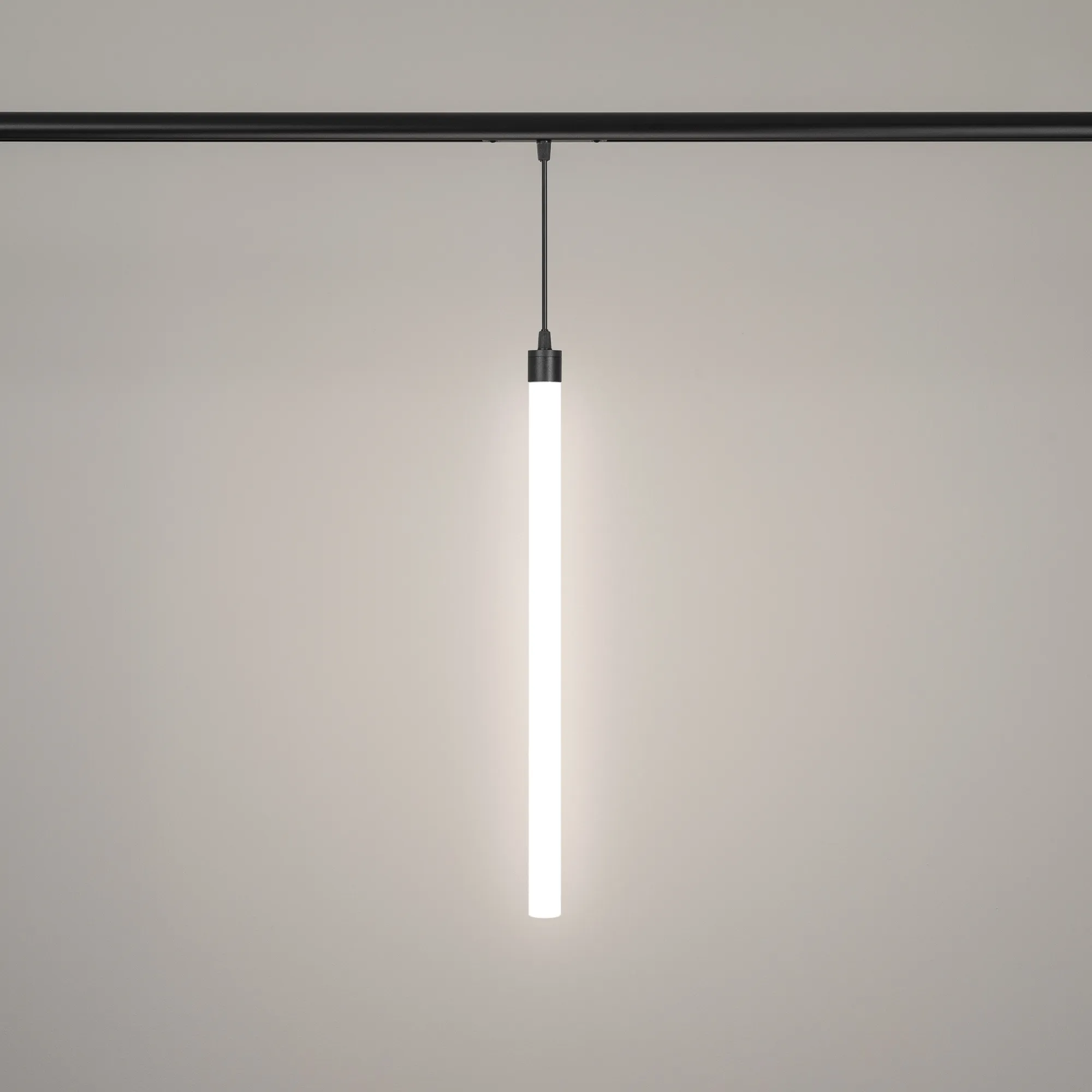 Светильник подвесной для магнитных треков серии ORIENT. Мощность 7 Вт, св. поток 450 лм, 67 лм/Вт, дневной 4000 K, CRI>90, угол 360°, напряжение питания 48 В. Матовый белый фигурный рассеиватель из ПВХ. Размер: диаметр 30 мм, длина 530 мм. Длина подвеса 195мм. Монтаж на магнитный трек ORIENT.