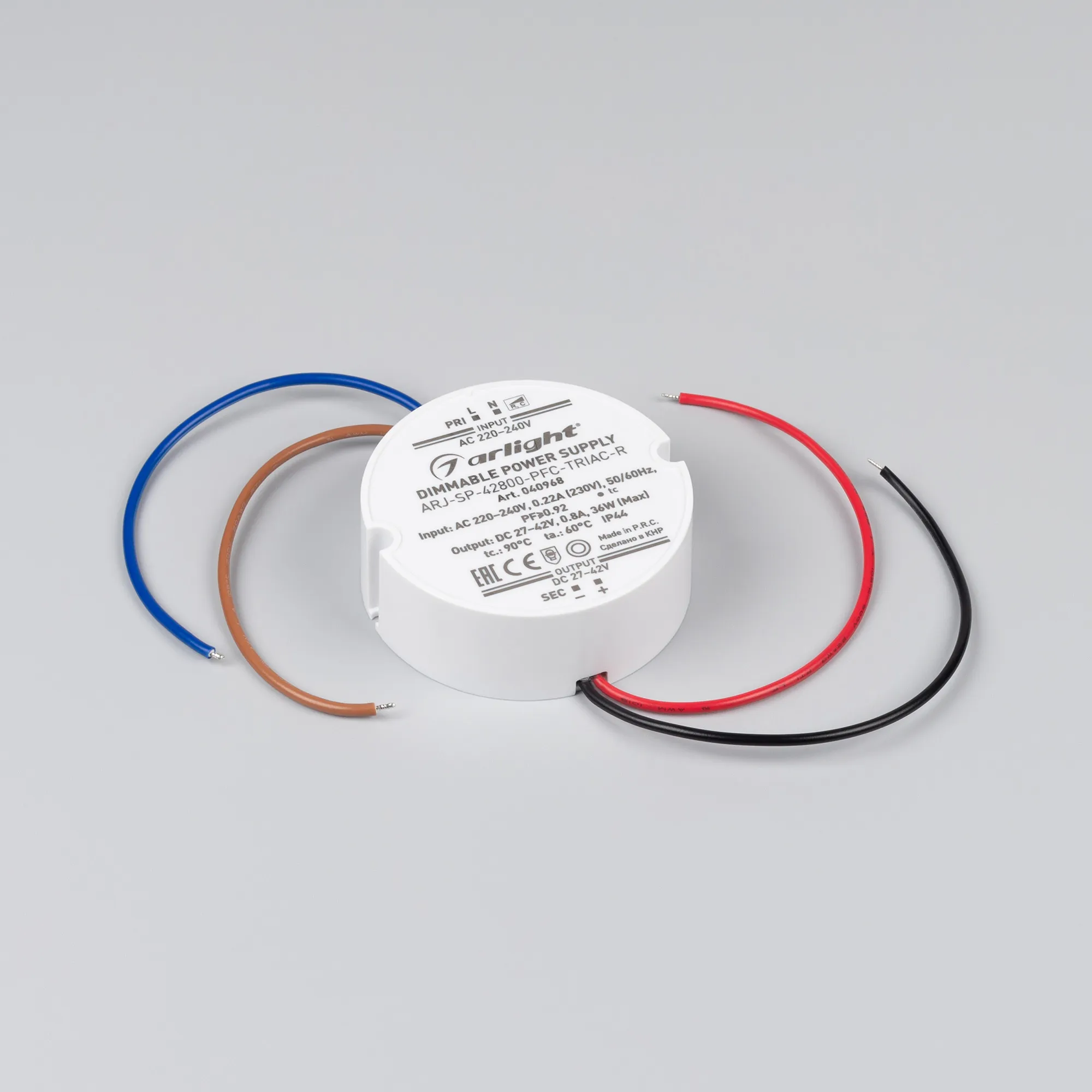 В магазине Мельковский Свет Вы можете купить "Блок питания ARJ-SP-42800-PFC-TRIAC-R (36W, 27-42V, 800mA) (Arlight, IP44 Пластик, 5 лет)"