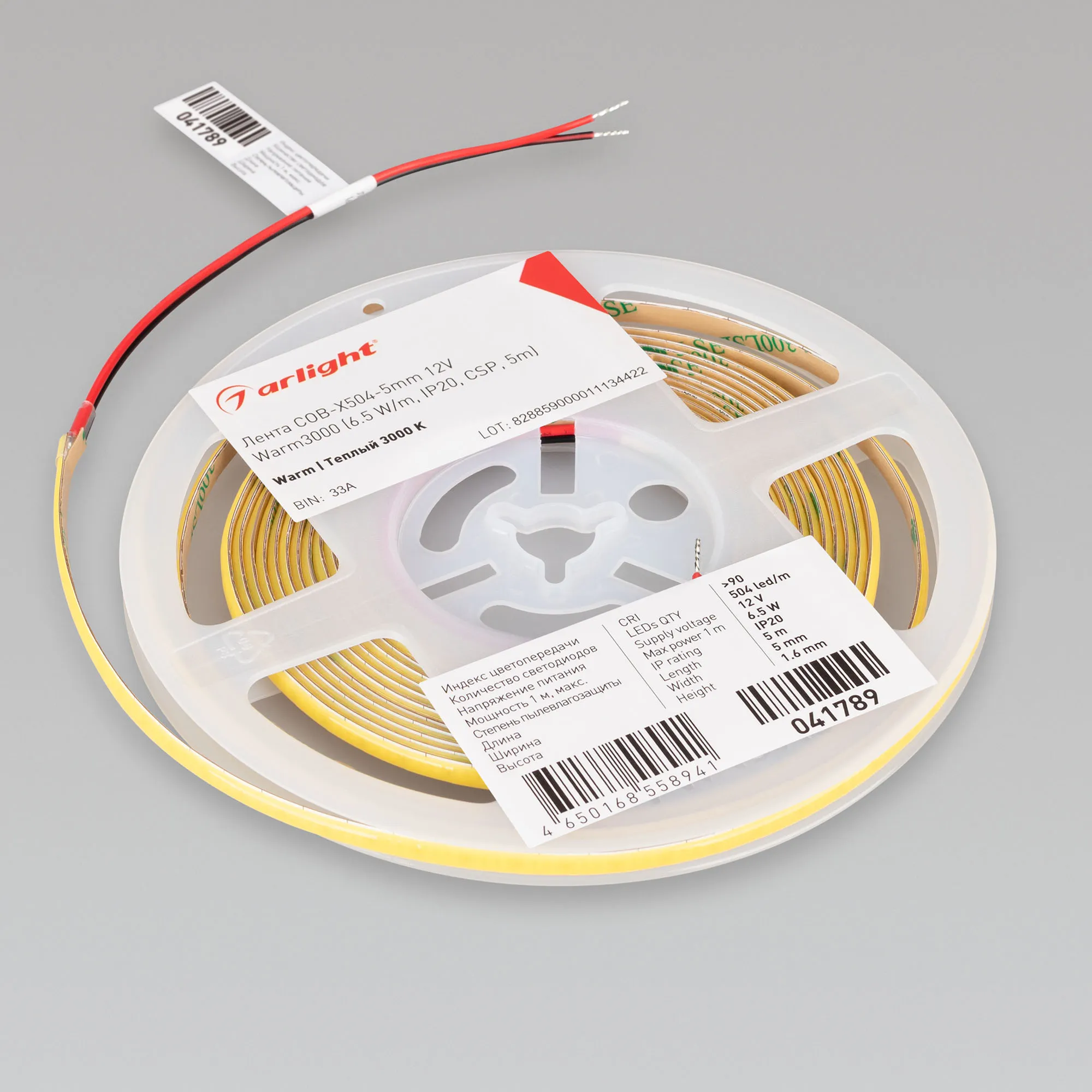 Лента светодиодная COB-X504-5mm 12V Warm3000 (6.5 W/m, IP20, CSP, 5m) (Arlight, -)