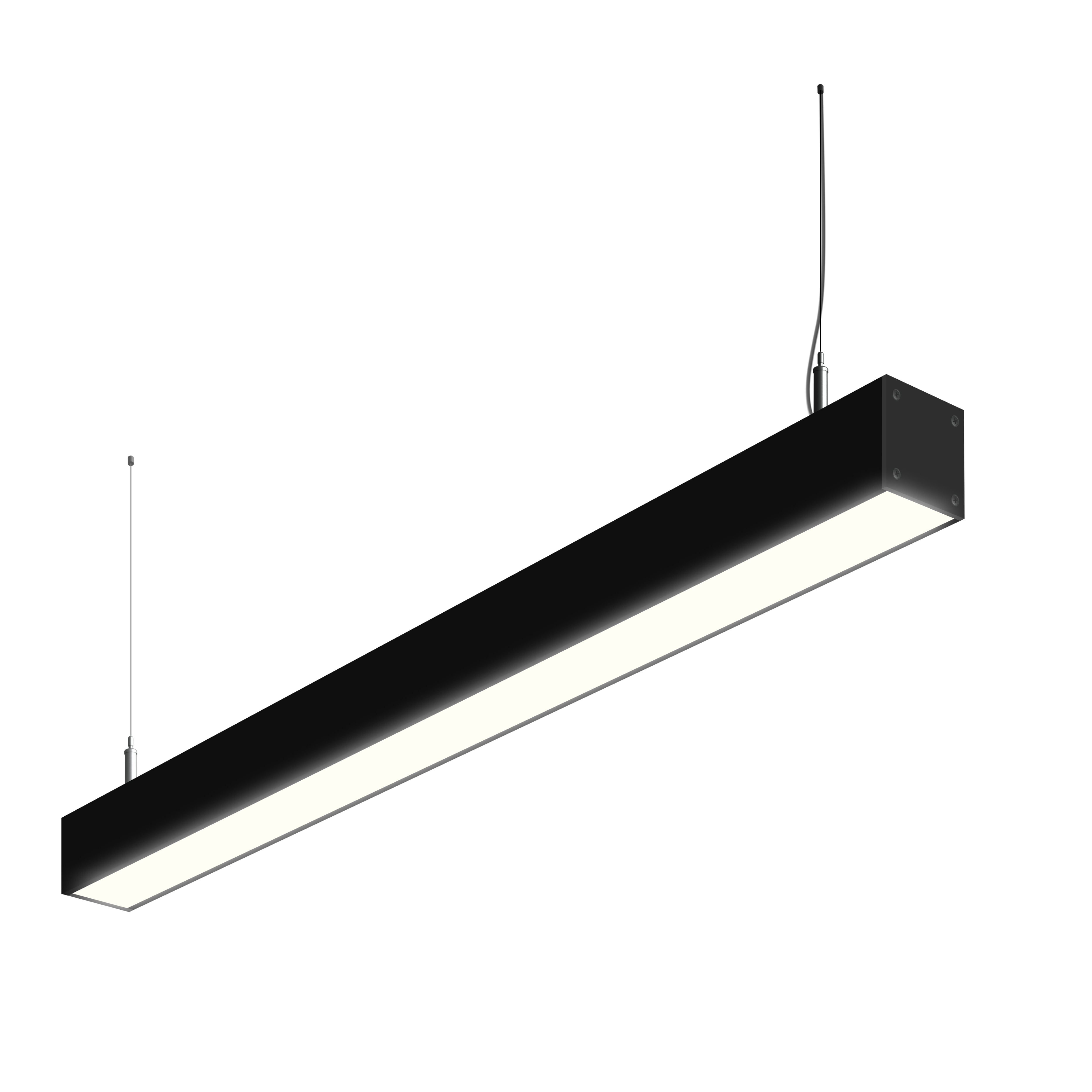 Подвесной светильник MS-LINEAR Линейный размер профиля 77х74мм длиной 3000мм мощностью 60W. Светильник собирается в алюминиевом корпусе с матовым рассеивателем, который дает равномерную засветку по всей площади.