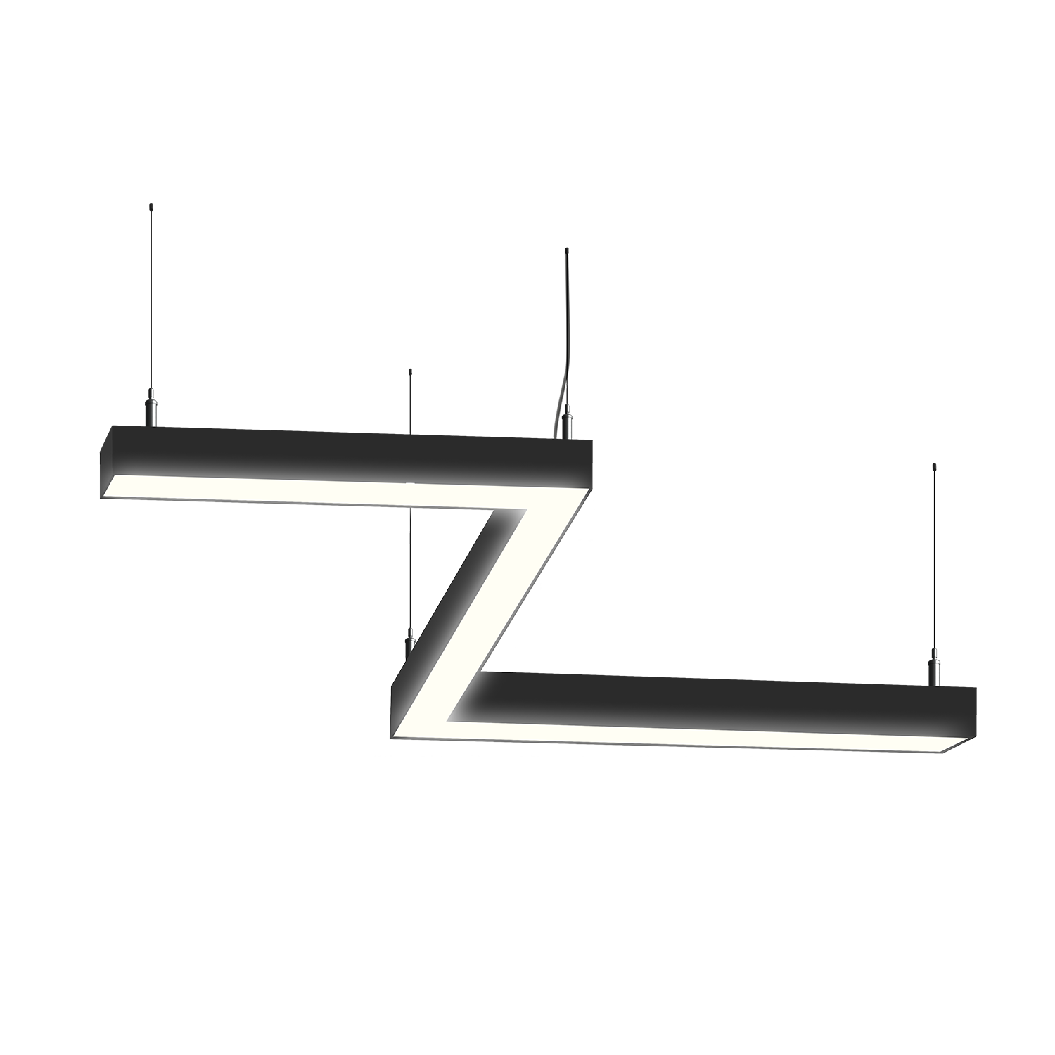 Cветодиодный фигурный светильник MS-ZIG Зигзаг размер профиля 50x50мм длиной 5х500мм мощностью 45W. Светильник собирается из алюминиевого основния с матовым рассеивателем, который дает равномерную засветку по всей площади.