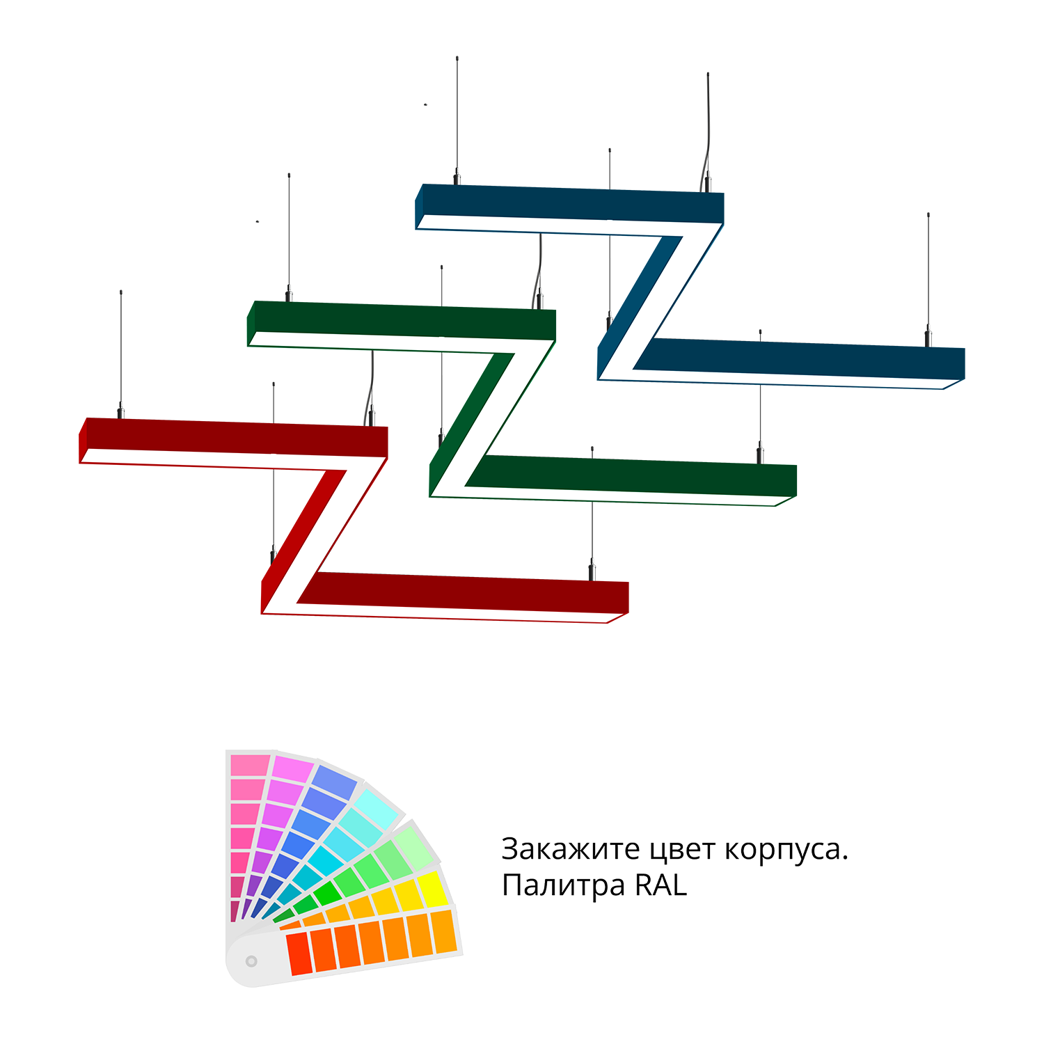 - Светильники доступны в базовых цветах: черный/серый/белый, дополнительно могут быть окрашены в любом цвете палитры RAL (уточняется у менеджера).