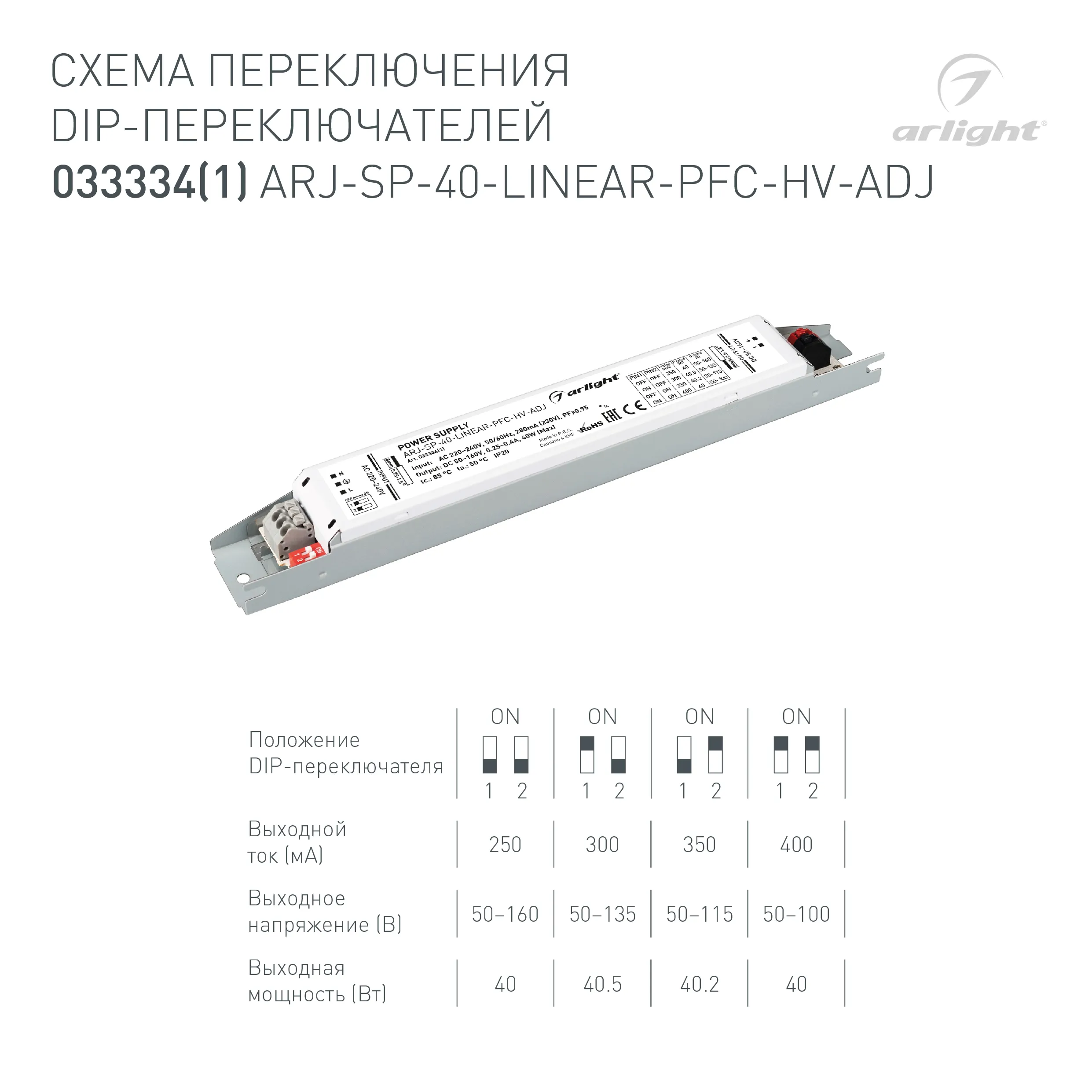 Блок питания ARJ-SP-40-LINEAR-PFC-HV-ADJ (40W, 50-160V, 0.25-0.4A) (Arlight, IP20 Металл, 5 лет)