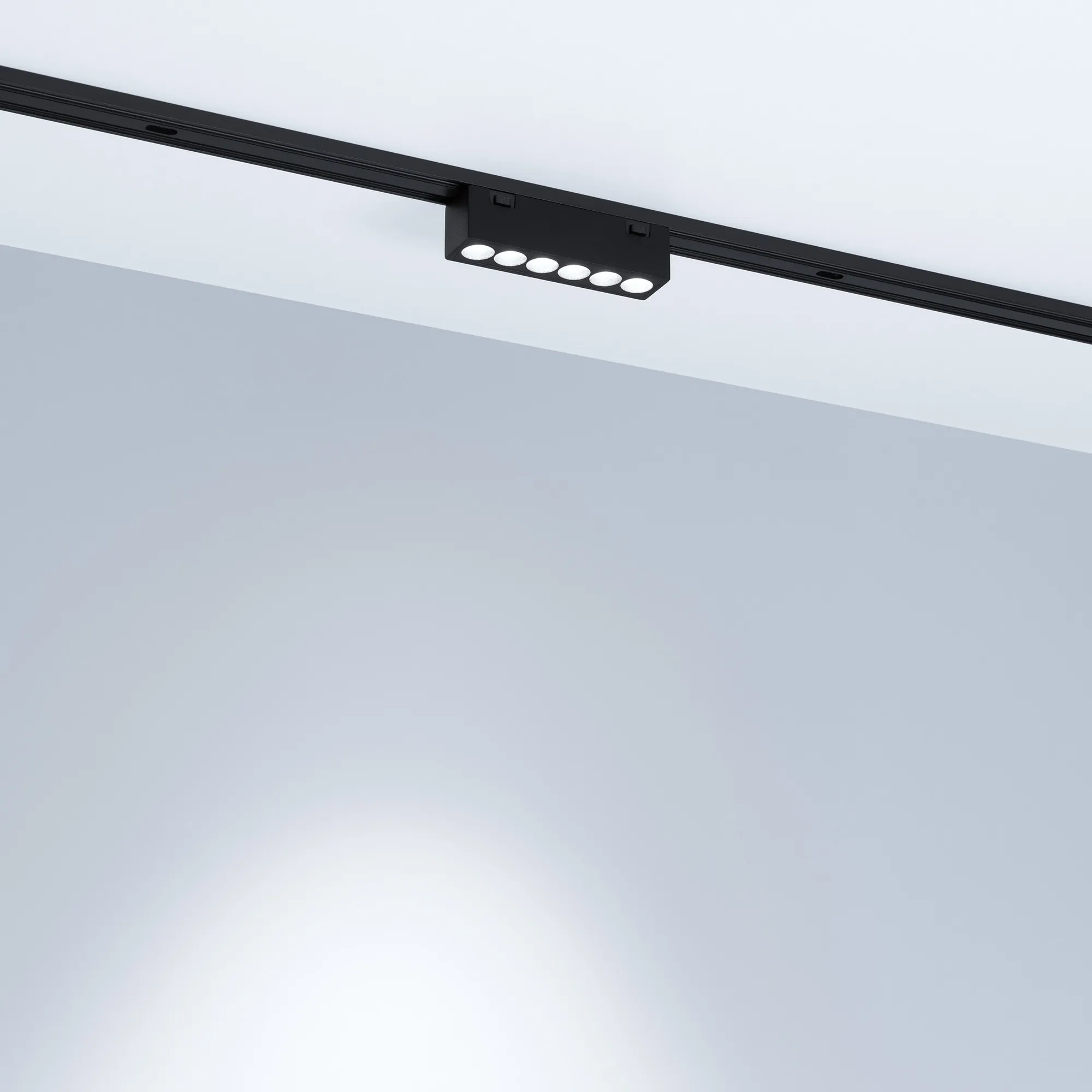 Светильник для магнитных треков MAG-VIBE с управлением DALI и изменяемой цветовой температурой. Мощность 6 Вт, св. поток 475-500 лм, 79-83 лм/Вт, изменяемая цветовая температура 2700-5700 K, CRI>90, угол 24°, напряжение питания 48 В. Черный прямоугольный корпус из алюминия, экран поликарбонат, степень защиты IP20. Размер: длина 101 мм, ширина 25 мм, высота 29 мм. Монтаж на трек MAG-VIBE. Пульсация <1%.