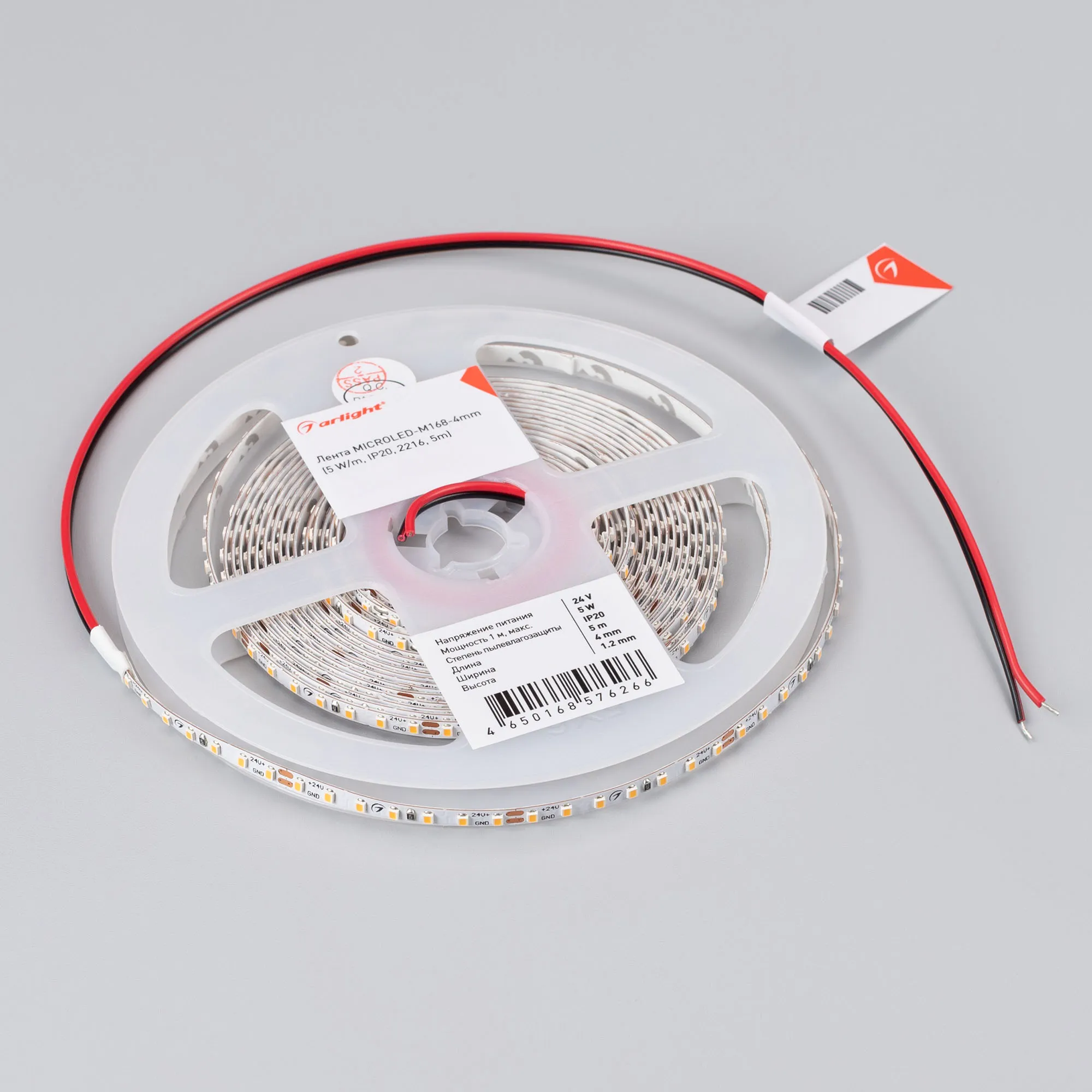 Лента светодиодная MICROLED-M168-4mm 24V Warm2700 (5 W/m, IP20, 2216, 5m) (Arlight, узкая)