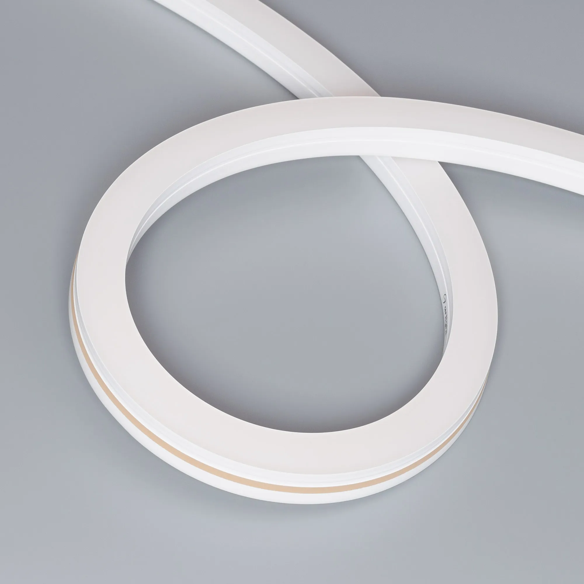 Гибкая герметичная лента (неон серии MOONLIGHT), сечение 20×20 мм. Светодиоды CSP 280 шт/м. Цвет свечения ТЕПЛЫЙ (2300К), индекс цветопередачи CRI>90, световой поток 370 лм/м, угол излучения 114°. Мощность 10 Вт/м, питание 24 В. Класс пылевлагозащиты IP67. Размеры 15000×20×20 мм. Мин. отрезок 50 мм. Горизонтальный изгиб SIDE, минимальный радиус изгиба 60 мм. Катушка 15 м. Цена за 1 м. Гарантия 5 лет.