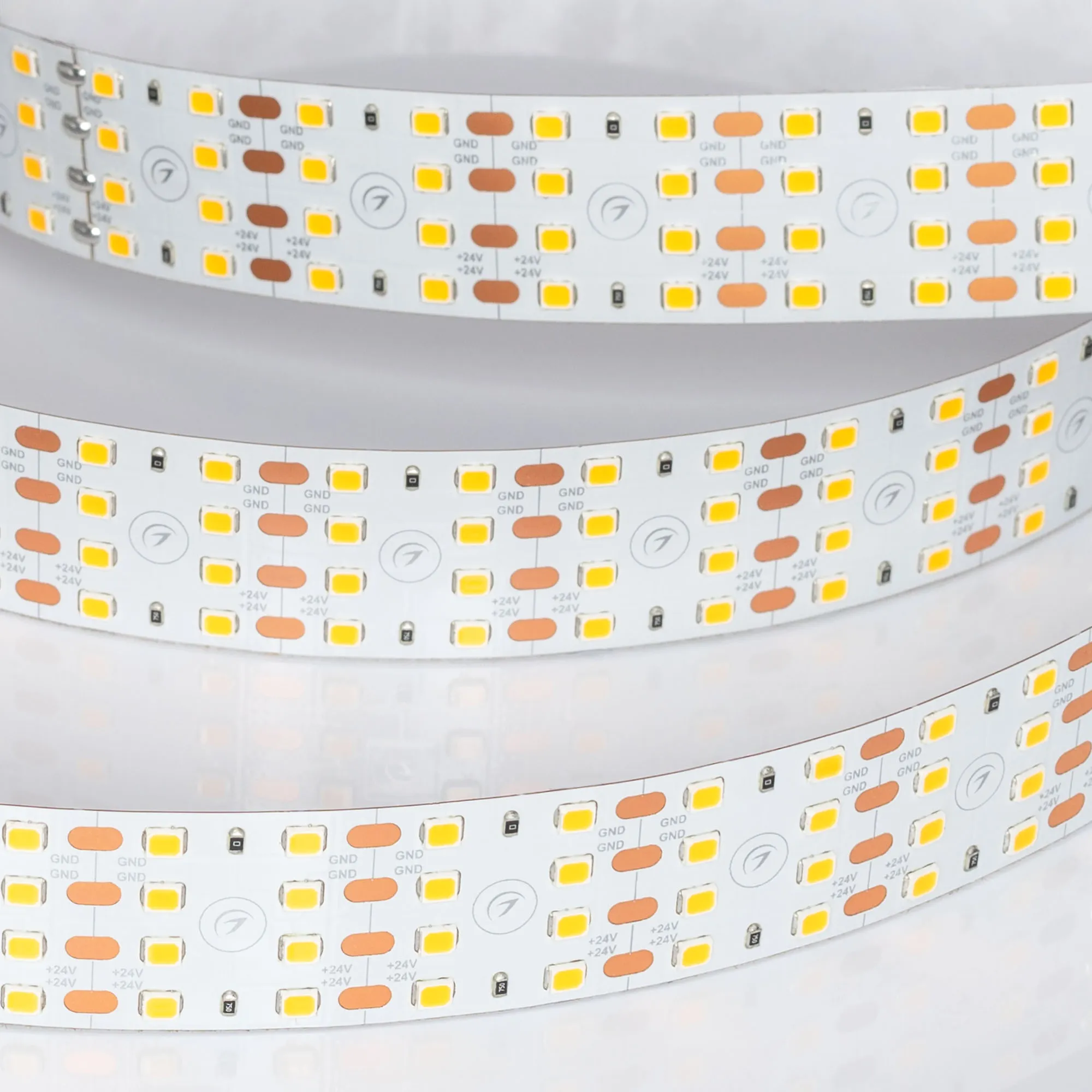 Светодиодная широкая лента UL серии A320. Светодиоды SMD 2835, 320 шт/м, белая плата шириной 24 мм, скотч 3M. Цвет ТЕПЛЫЙ 3000K, индекс цветопередачи CRI>90, угол 120°. Питание 24 В, мощность 26 Вт/м (65 Вт на 2.5 м). Размеры 2500x24x1.5 мм. Мин. отрезок 25 мм, 8 светодиодов. Цена за 1 м. Обязательна установка на профиль.