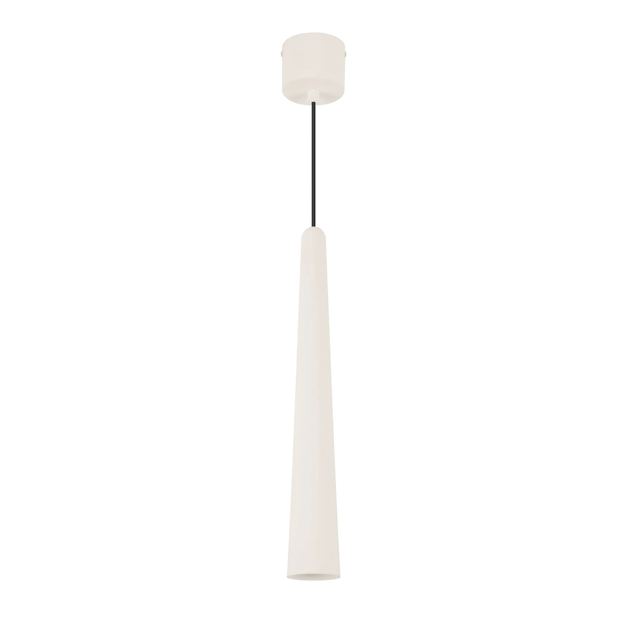 Подвесной светильник. Мощность 5 Вт, св. поток 400 лм, световая эффективность 70 лм/Вт, теплый 3000K, CRI>92, угол 36°, напряжение питания 230 В. Кремовый конусообразный вытянутый корпус из алюминия, линза из PMMA, степень защиты IP20. Размер: диаметр 57 мм, высота 400 мм. Монтаж подвесной, длина подвеса 2000 мм, регулируемая. В комплекте 2 вида чаш. Габариты встраиваемой чаши: Ø 80x41 мм. Габариты накладной чаши Ø80x60 мм. Драйвер 2,8-12В, 500 мА, пульсация <1%.