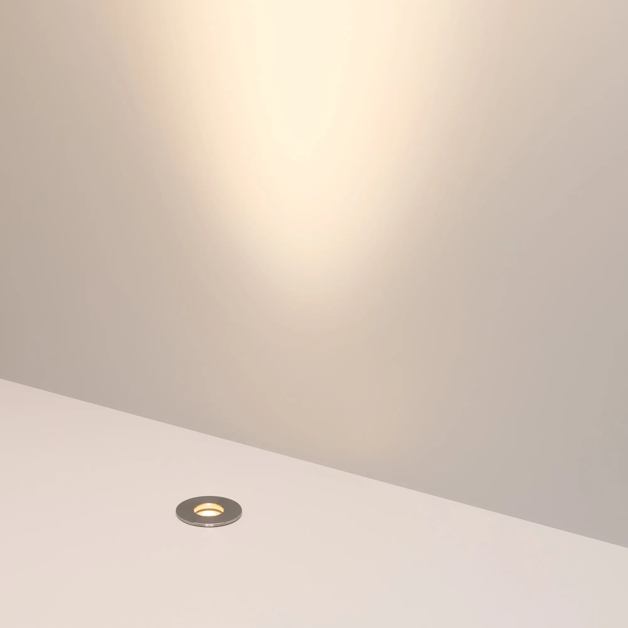 Встраиваемый светодиодный светильник для грунта и пола. Мощность 3Вт, световой поток 130лм, цвет ТЕПЛЫЙ 3000К. CRI(Ra)>80, угол 36°. Круглый влагозащищенный корпус IP67, нержавеющая сталь. Экран закалённое стекло. Питание DC24V, 3Вт. Размер DxH Ø40x55мм. Установка в отверстие DxH Ø33x90мм. ВНИМАНИЕ! Светильник не поддерживает регулирование светового потока ШИМ.