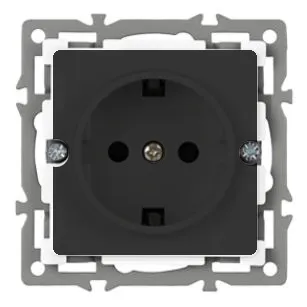 Механизм розетки с заземлением на 1 пост, с суппортом из алюминия. Цвет - черный. Степень пылевлагозащиты - IP20.