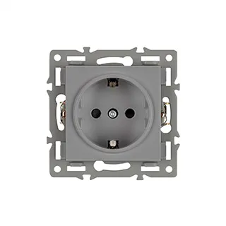 Механизм розетки с заземлением 1 пост, с суппортом из алюминия. Цвет - серый. Степень пылевлагозащиты - IP20.