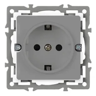 Механизм розетки с заземлением на 1 пост, с суппортом из алюминия. Цвет - серый. Степень пылевлагозащиты - IP20.