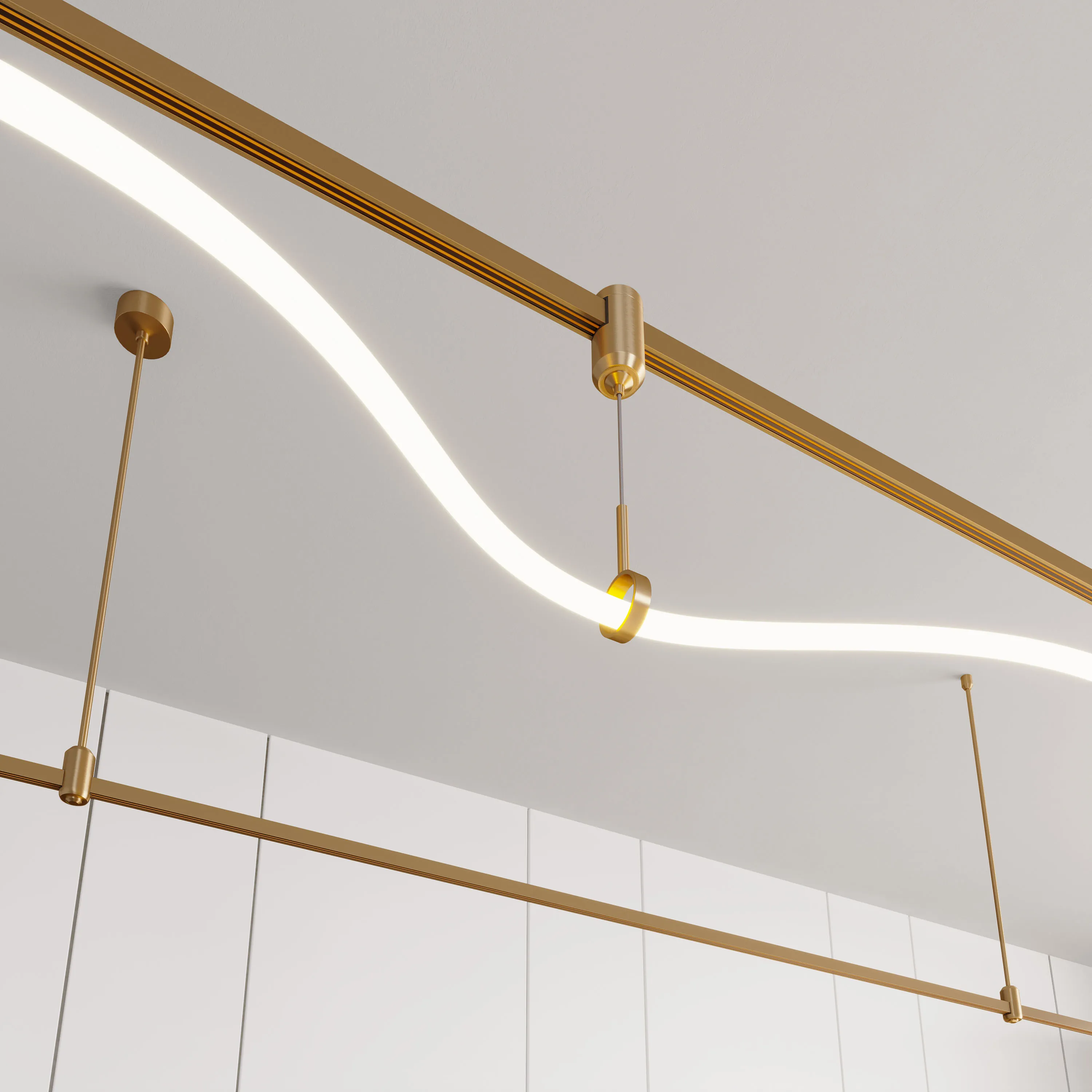 Держатель трека HOLDER-HANG используется для механического присоединения в произвольном месте к треку и служит коннектором и подвесом светильников TUBE-Elastic системы APRIORI. Тип крепления A. Не проводит электричество. Размеры: Диаметр 38 мм. высота 1500мм. Материал алюминий, цвет светлое золото.