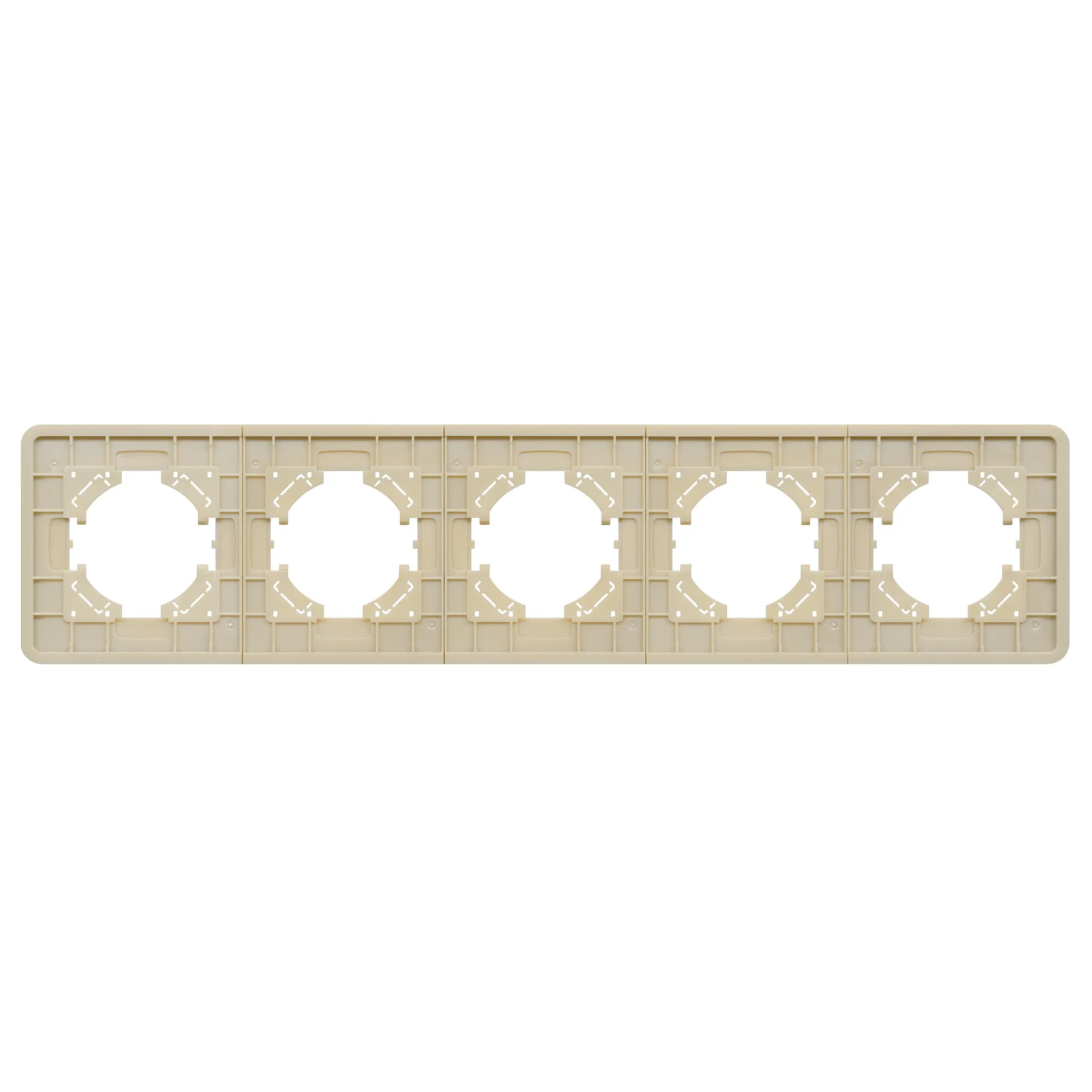 Рамка алюминиевая на 5 постов, под встраиваемый механизм. Цвет - золотой с Soft-Touch покрытием. Среднего уровня герметичности IP20. Ориентация монтажа - горизонтальная (основным ориентиром служат посадочные выступы для накладки механизма).