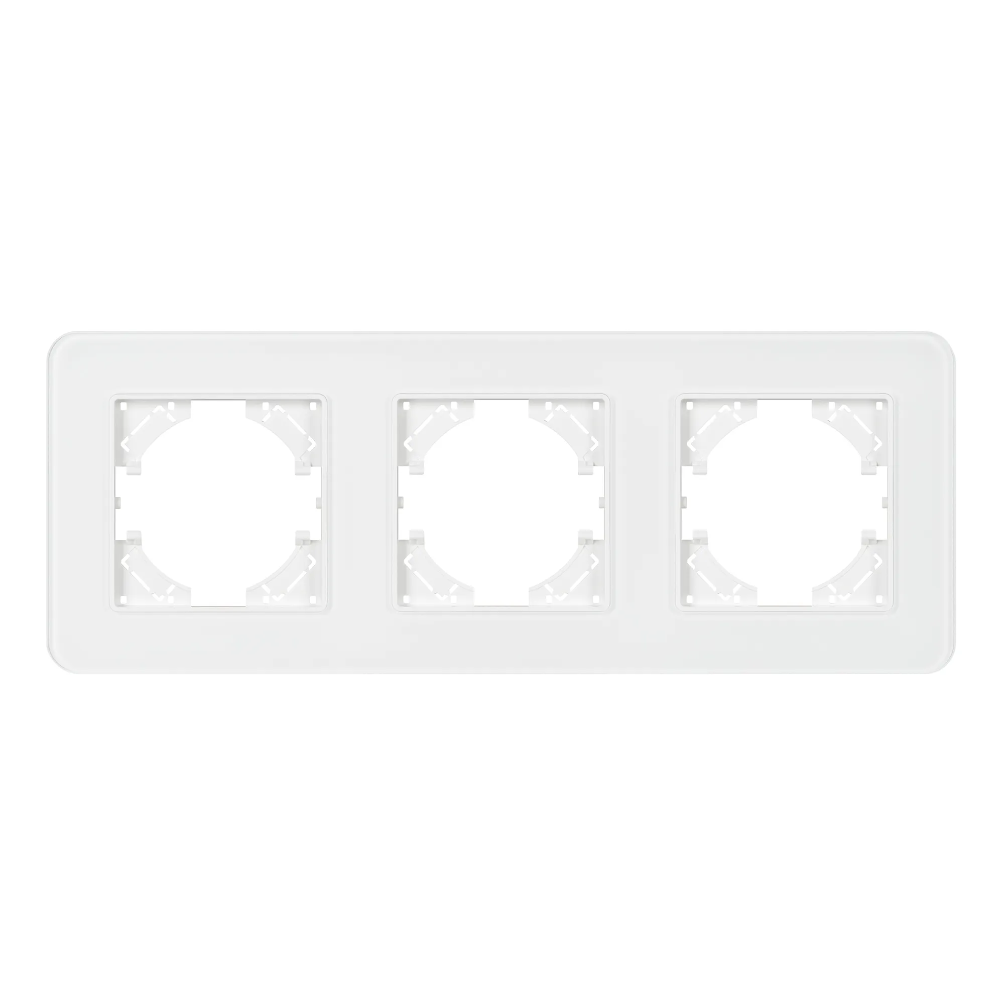 Рамка стеклянная на 3 поста, под встраиваемый механизм. Цвет - белый. Среднего уровня герметичности IP20. Ориентация монтажа - горизонтальная (основным ориентиром служат посадочные выступы для накладки механизма).