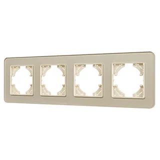 Рамка стеклянная на 4 поста, под встраиваемый механизм. Цвет - золотой. Среднего уровня герметичности IP20. Ориентация монтажа - горизонтальная (основным ориентиром служат посадочные выступы для накладки механизма).