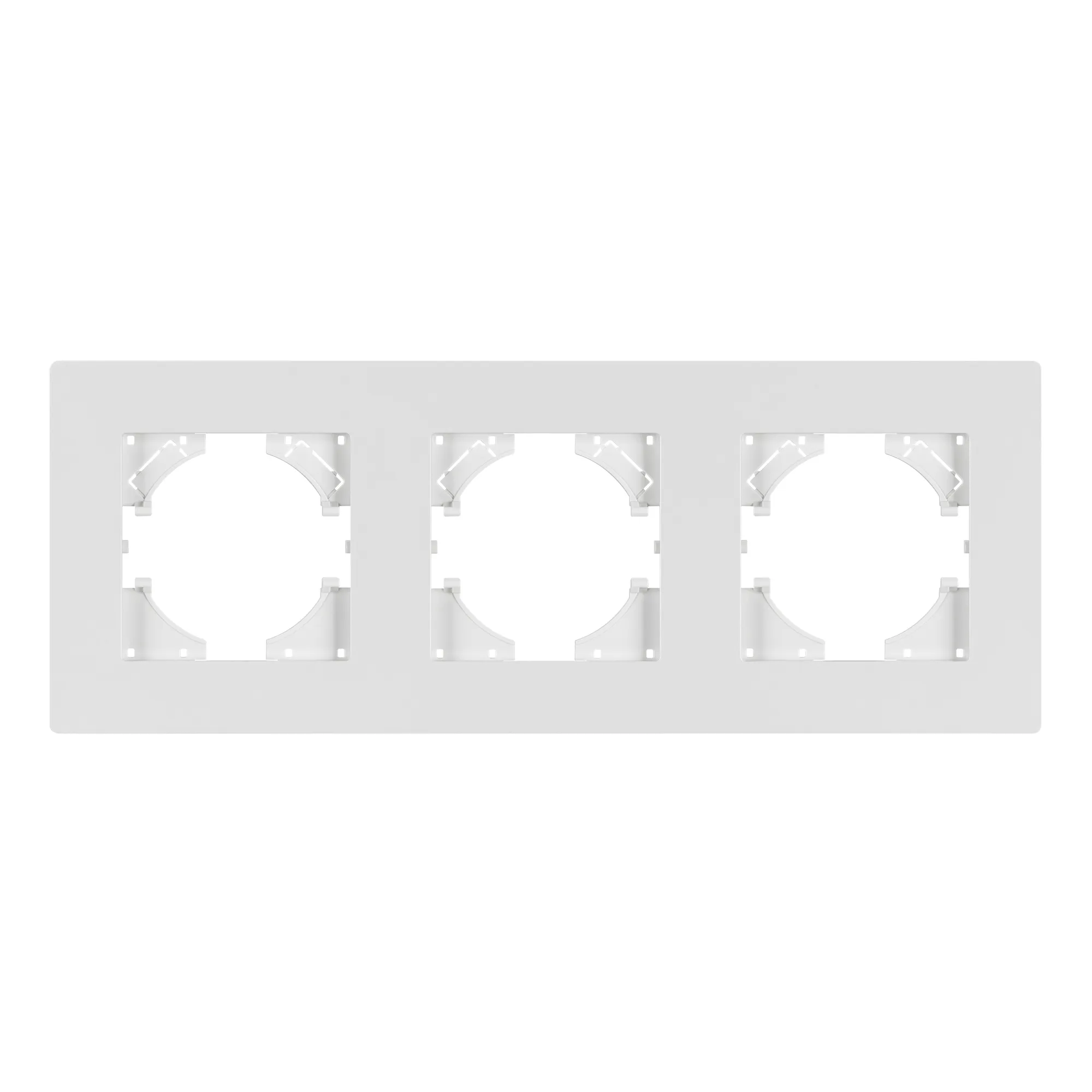 Рамка пластиковая на 3 поста, под встраиваемый механизм. Цвет - белый. Среднего уровня герметичности IP20. Ориентация монтажа - горизонтальная (основным ориентиром служат посадочные выступы для накладки механизма).